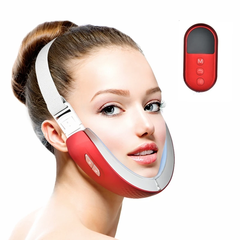 EMS светодиодный фотон устройство для лифтинга лица красный синий светильник терапия Гальваническая Вибрация Массажер тонкое лицо с фиксирующим поясом инструменты для похудения