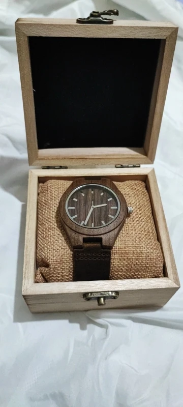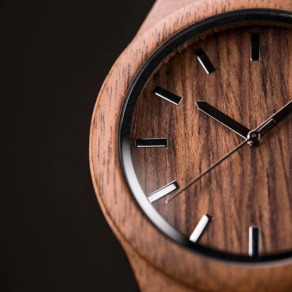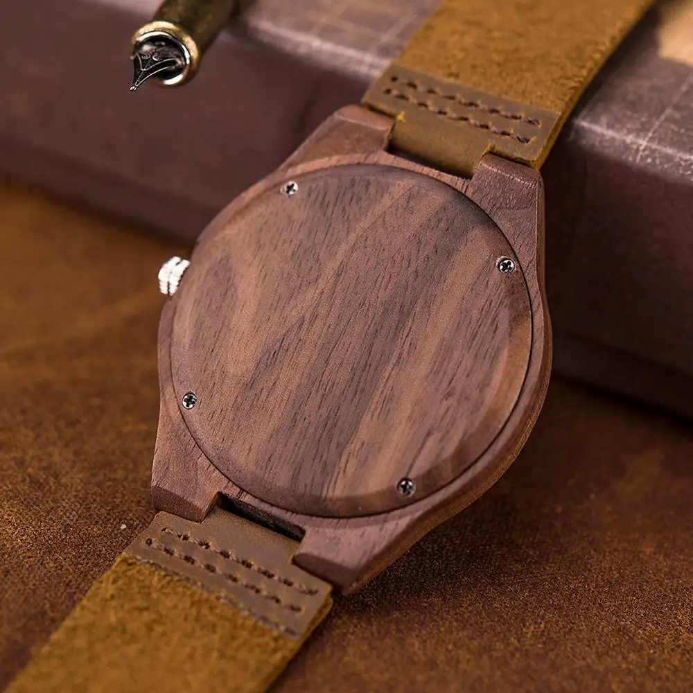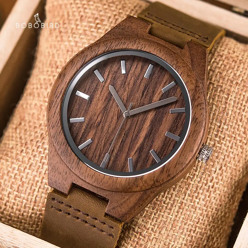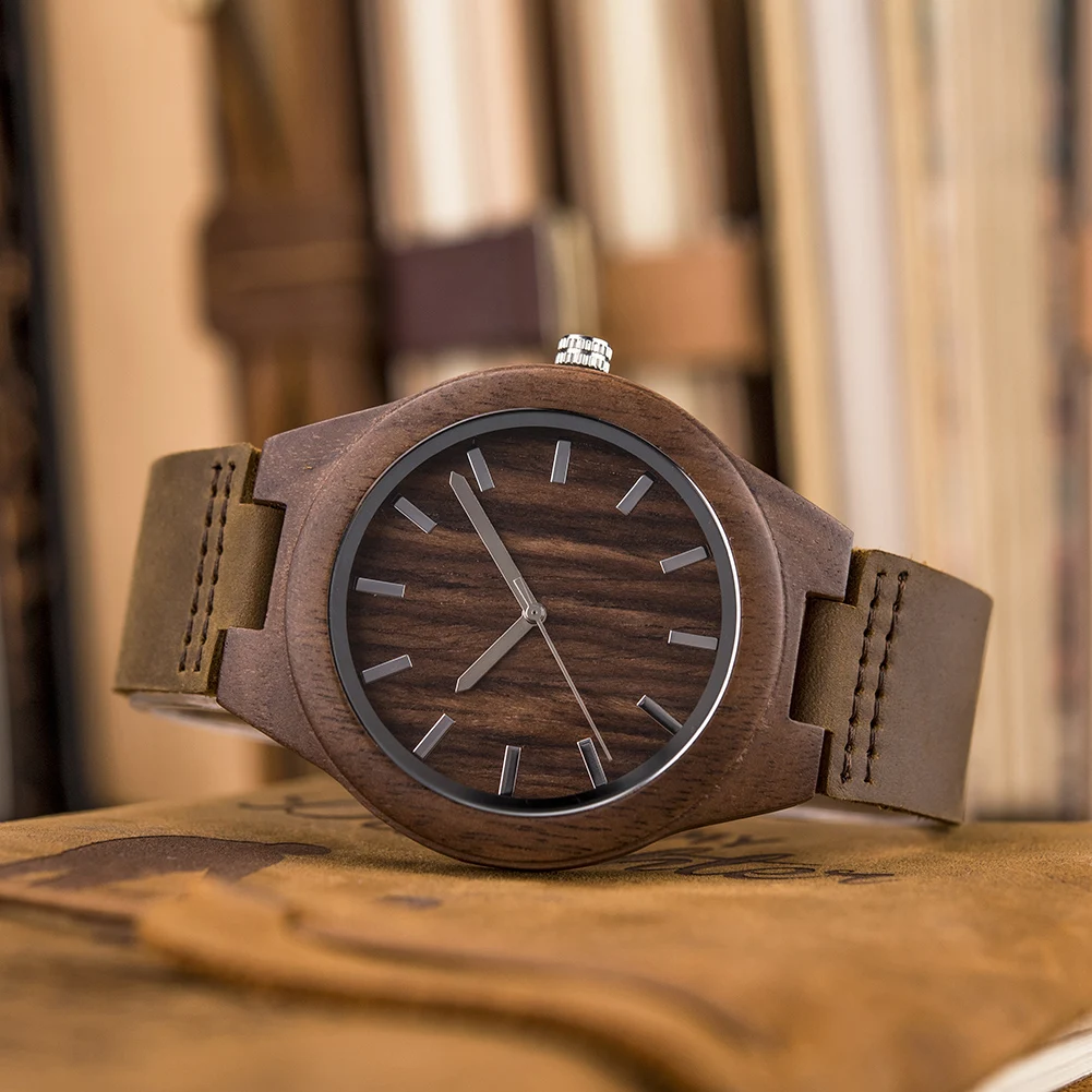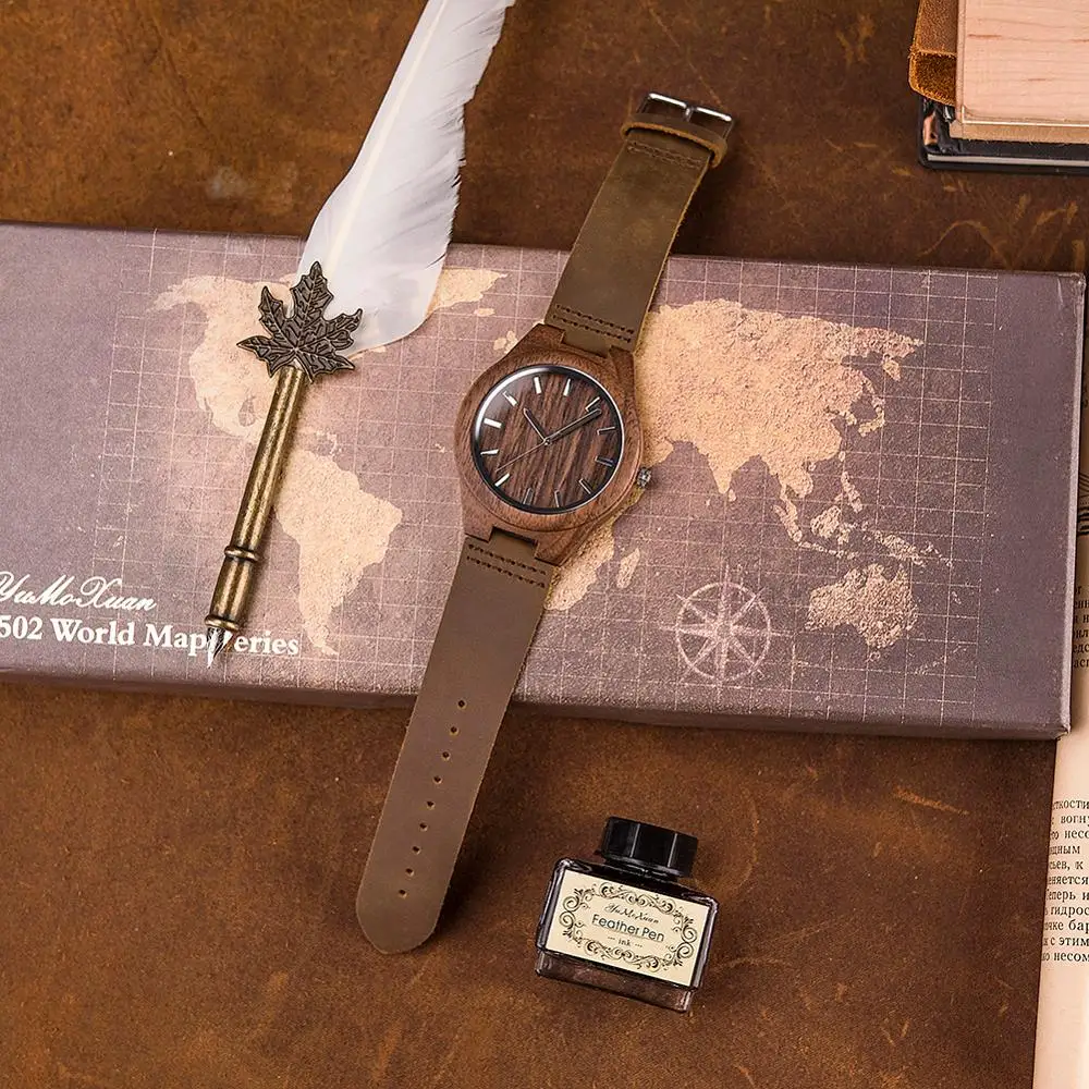 Часы мужские кварцевые с кожаным ремешком, деревянные, в подарочной коробке