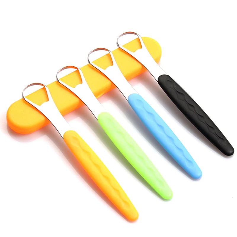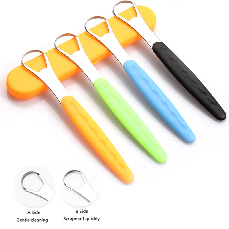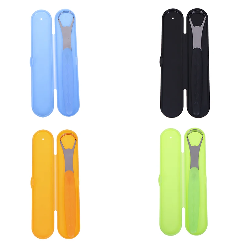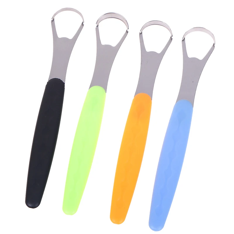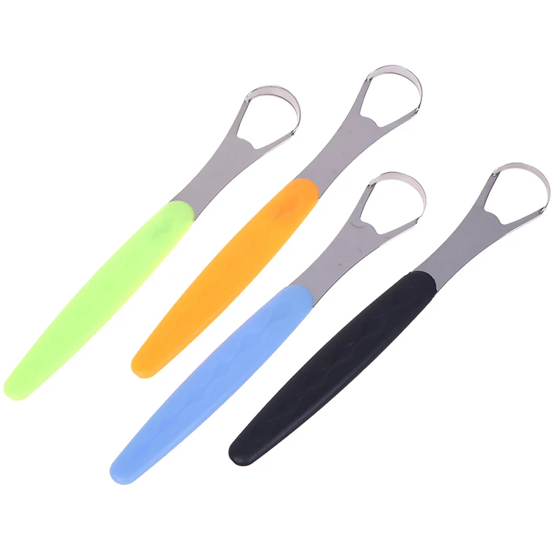 Расширьте язык, насколько это возможно, и очищающее средство для языка достигнет самой широкой точки языка.Царапать изнутри с помощью нержавеющего скребкаПовторите движение соскабливания 5-8 раз, пока язык не будет чистымРот на краску и очистите скребок водой.