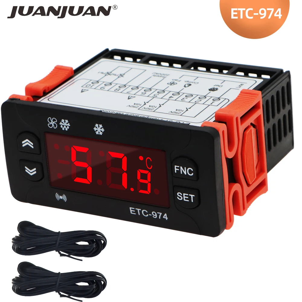 Цифровой регулятор температуры ETC-974, микрокомпьютер, термостаты, термостат, сигнализация охлаждения, 220 В, датчик NTC