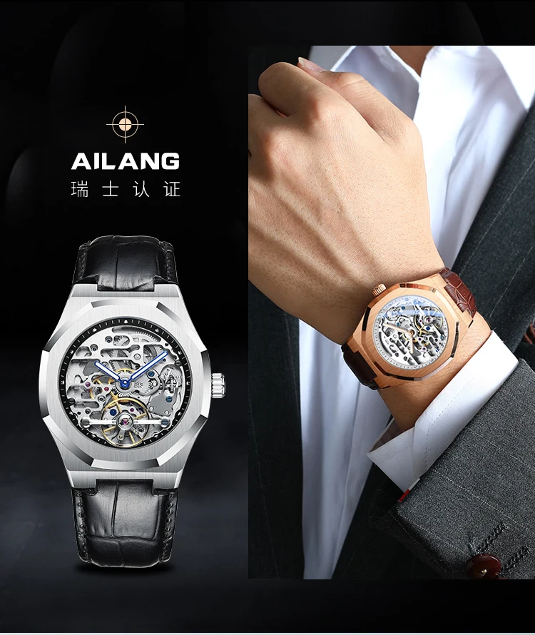 AILANG оригинальные часы с автоподзаводом, мужские механические часы, автоматические фирменные винные бочки, форма 2020, новые полые квадратные