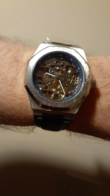 Это очень красивые часы-скелетоны с хорошо работающим ротором для самонамотки: он прибыл через две недели, доставка все еще работает. Упаковка была отличной: без внешней коробки, но плотно упакована в пластиковый конверт с пузырчатой упаковкой «сигары-ячейки», так что с ней может быть мало, даже если ее бросят! Насколько я могу видеть, состояние идеальное. Я оставлю дополнительный отзыв, когда проверю время.