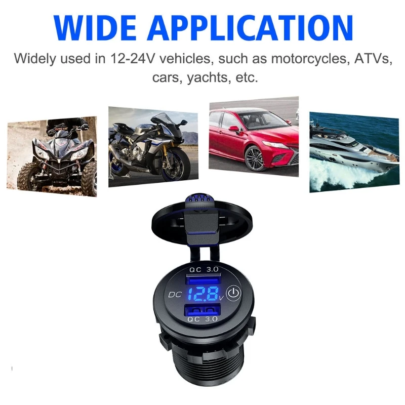 12V 24V Dual QC3.0 USB Автомобильное зарядное устройство с сенсорным выключателем и светодиодный вольтметр