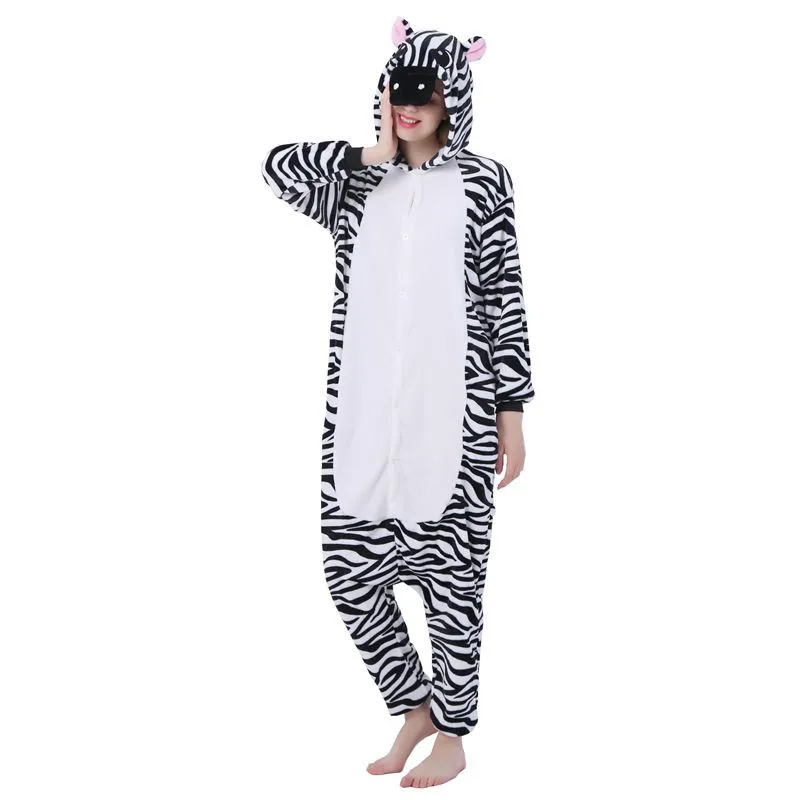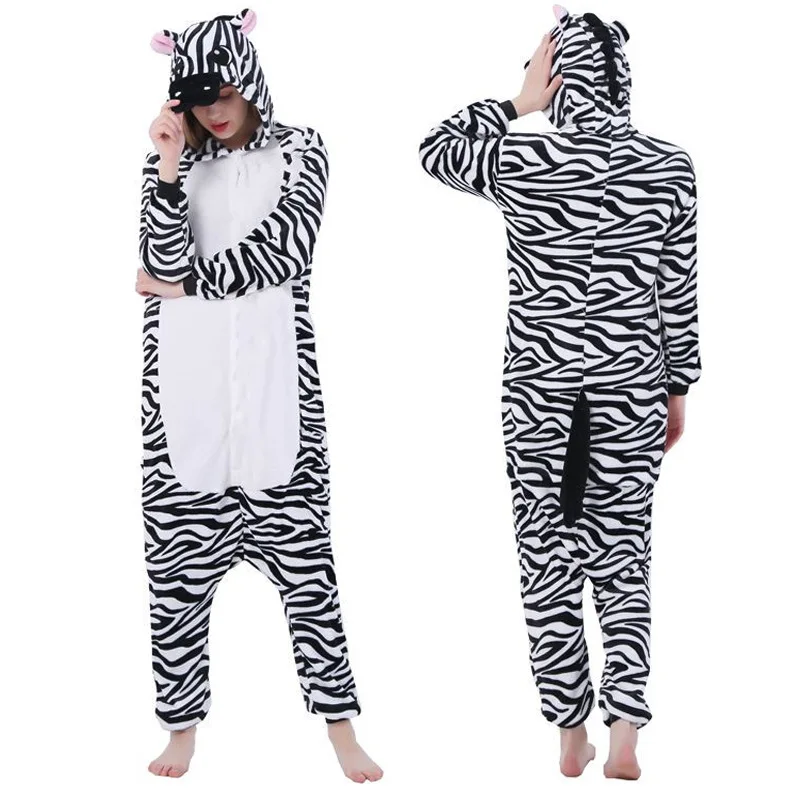 Пижама-Кигуруми для взрослых, комбинезон в виде зебры, зимний комбинезон с капюшоном, костюмы на Хэллоуин для женщин и мужчин, одежда для сна
