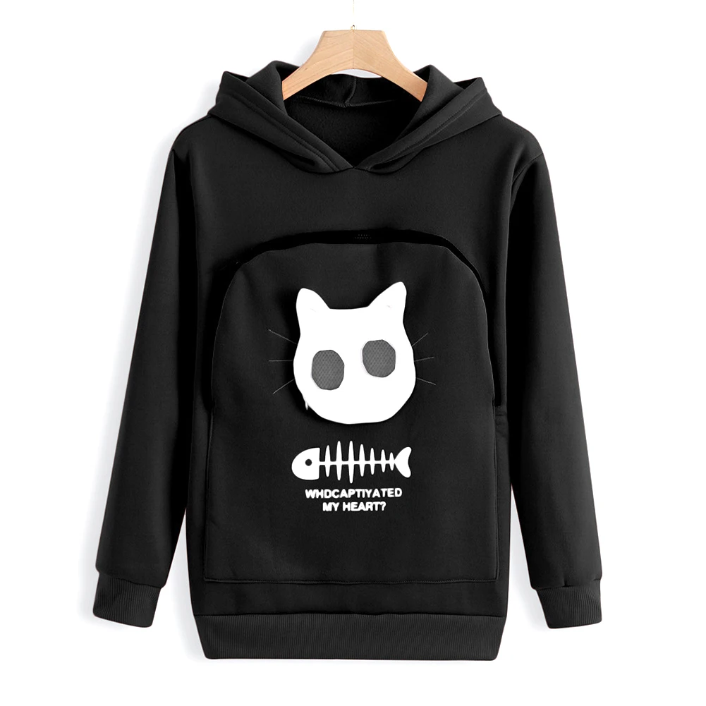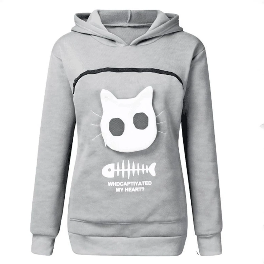 Толстовка с капюшоном для домашних животных, утепленная рубашка для влюбленных в кошку, кенгуру, собаку, лапу, пуловер для малышей, свитшот с карманами для ушей животных