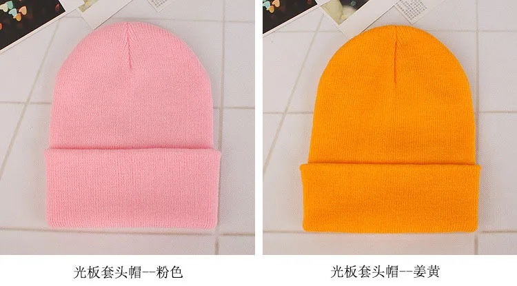 Женскиемужские зимние шапки облегающие вязаные флуоресцентные осенн...