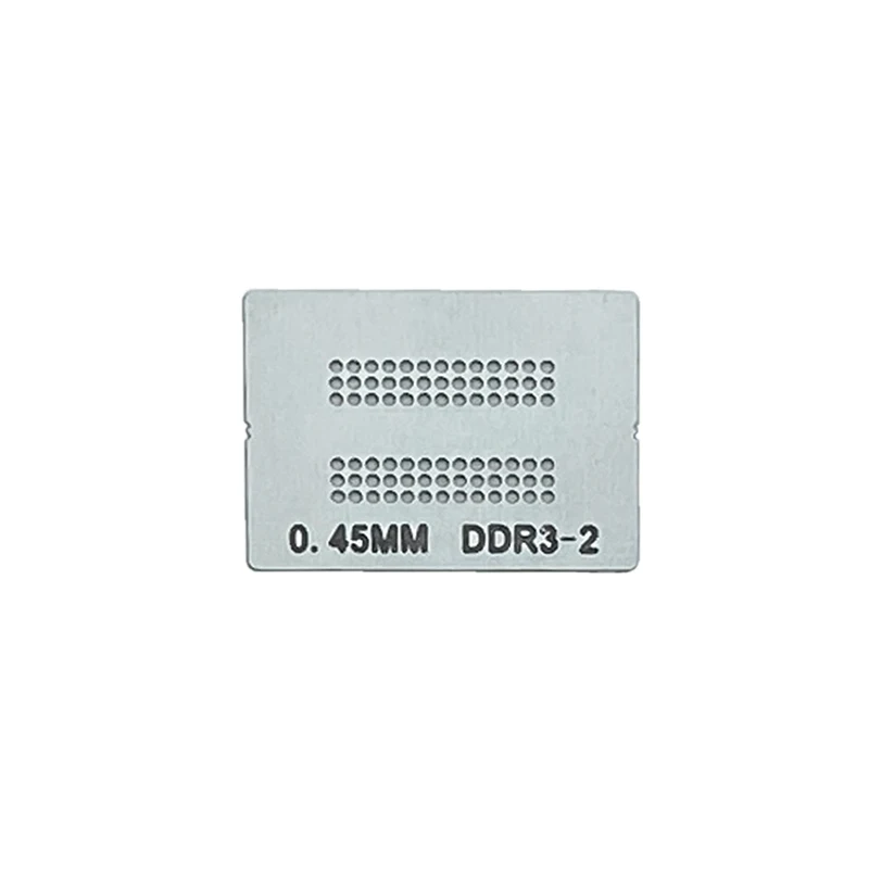 Стальная сетка памяти, видеокарты и ноутбука, обычно используемый шар памяти может быть непосредственно нагревается горячим воздухом. Размер использованного паяльного шара составляет 0,45 мм. Этот набор стальной сетки подходит для растений с широко используемой пакованной памятью второго и третьего поколения, настольной видеокартой, видеопамятью на материнских платах ноутбука, И некоторые растения с регулярным интервалом упакованных сетевых карт и чипов питания.