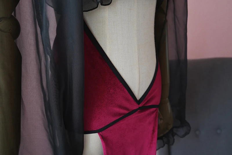 Соблазнительное готическое черно-красное кружевное сексуальное женс...
