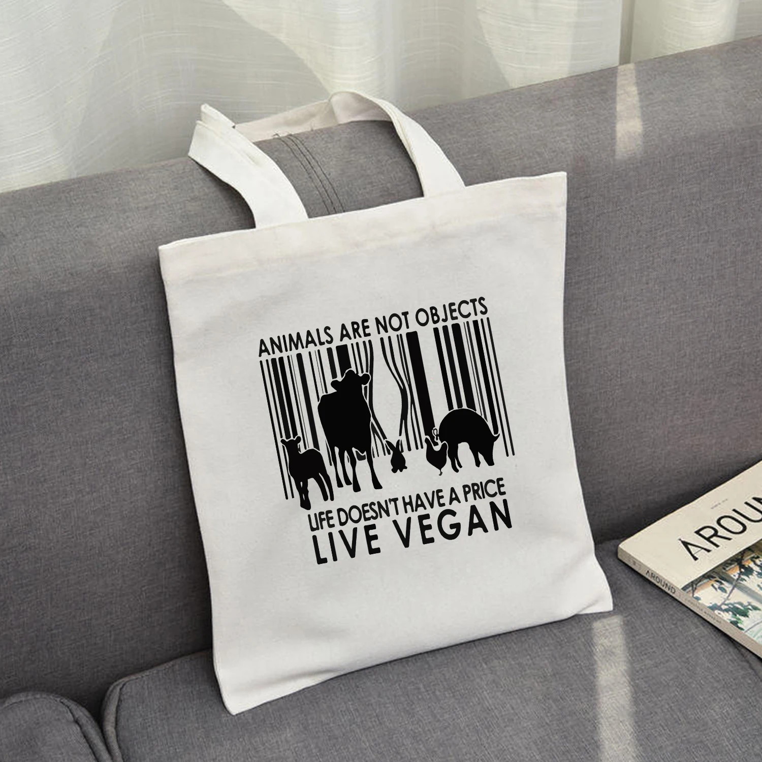 Vegan женская сумка для книг с буквенным принтом, сумка из хлопчатобумажной ткани, сумка-тоут в стиле хип-хоп, сумка через плечо, многоразовые сумки для покупок