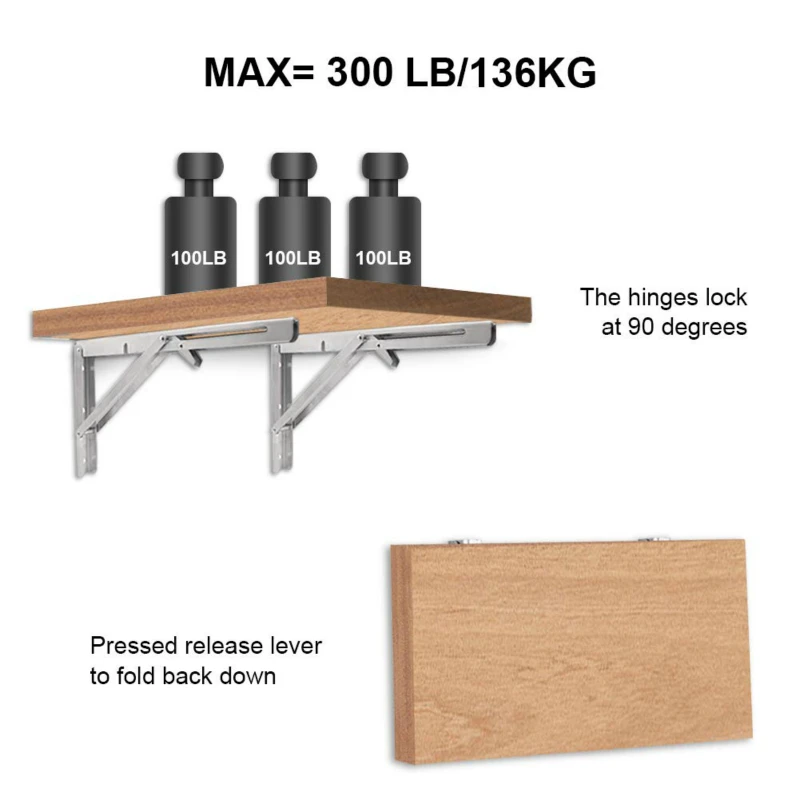 2 шт., складной кронштейн из нержавеющей стали, 136 кг