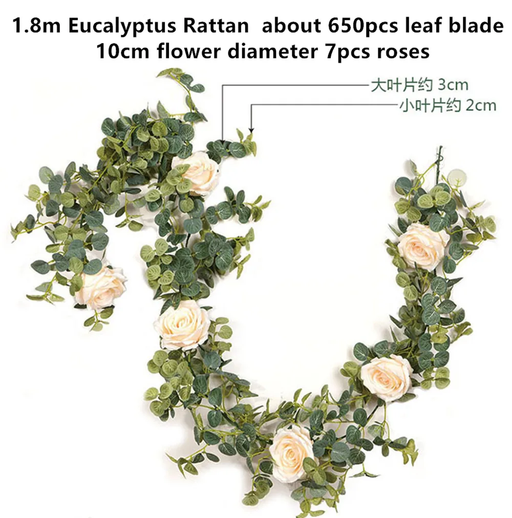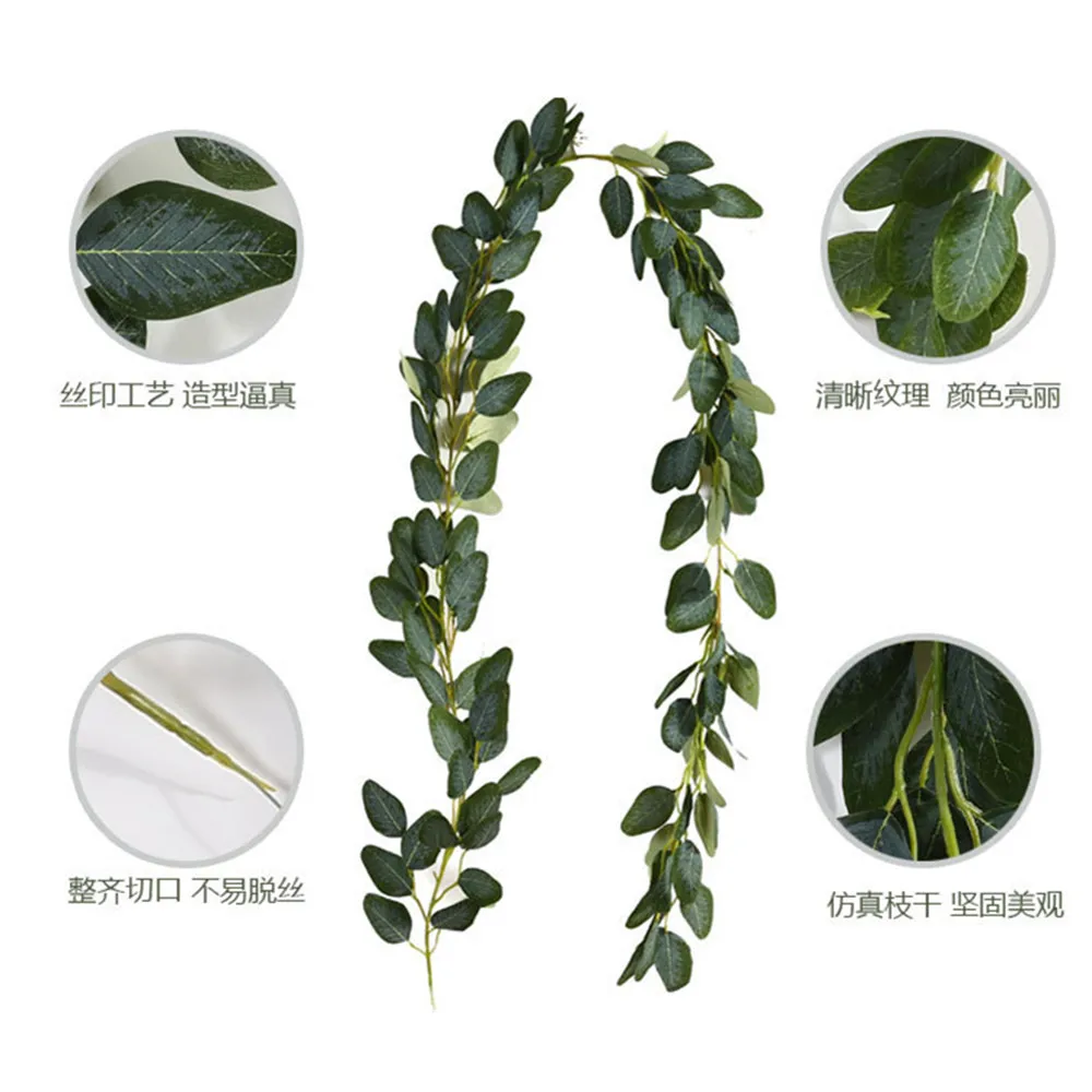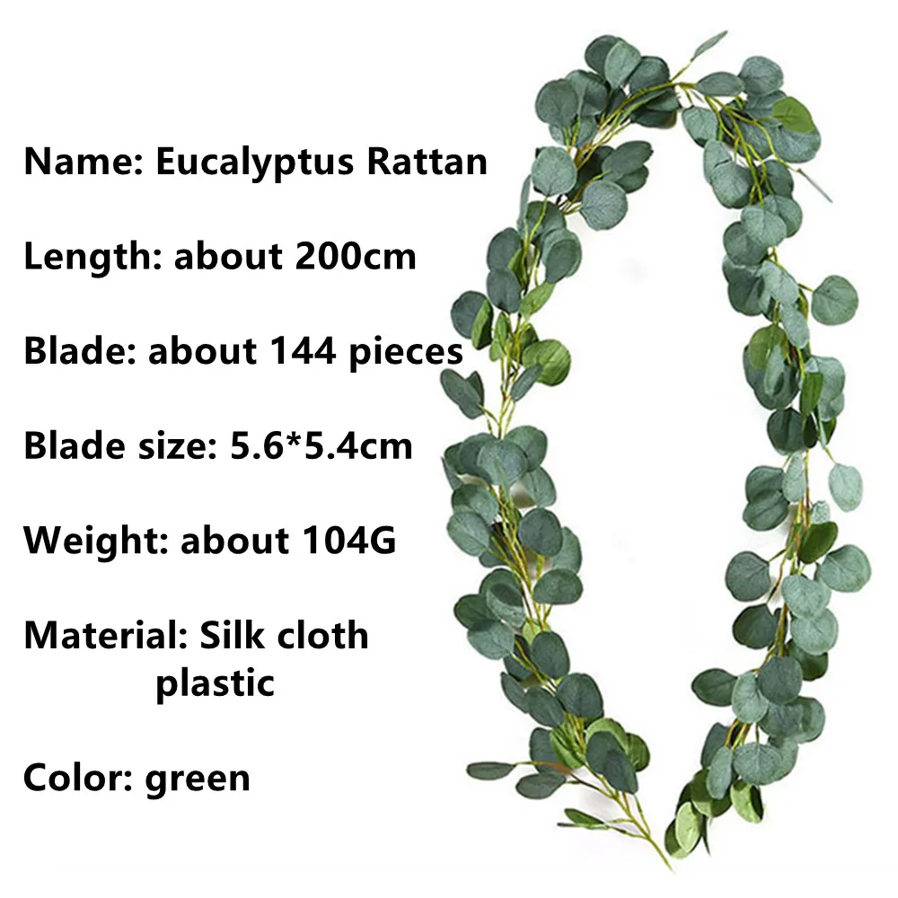 Искусственные растения, эвкалипт, гирлянда, листья, лоза 2 м, пластиковые искусственные растения из ротанга для украшения дома и сада