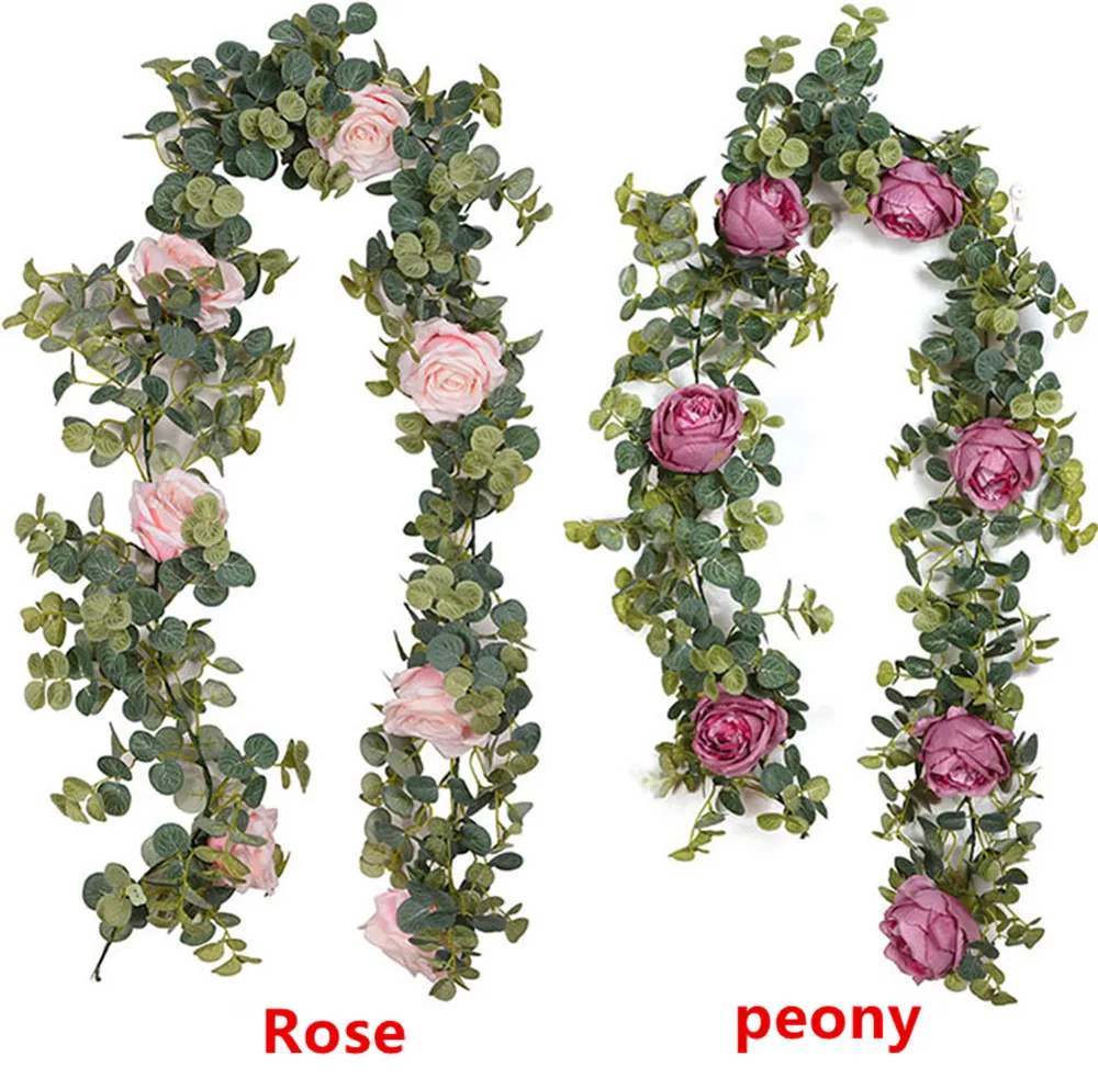 Свадебное Украшение подвесное искусственные растения эвкалиптовая гирлянда листья 2 м лоза ротанга Пластиковые поддельные растения для домашнего декора сада