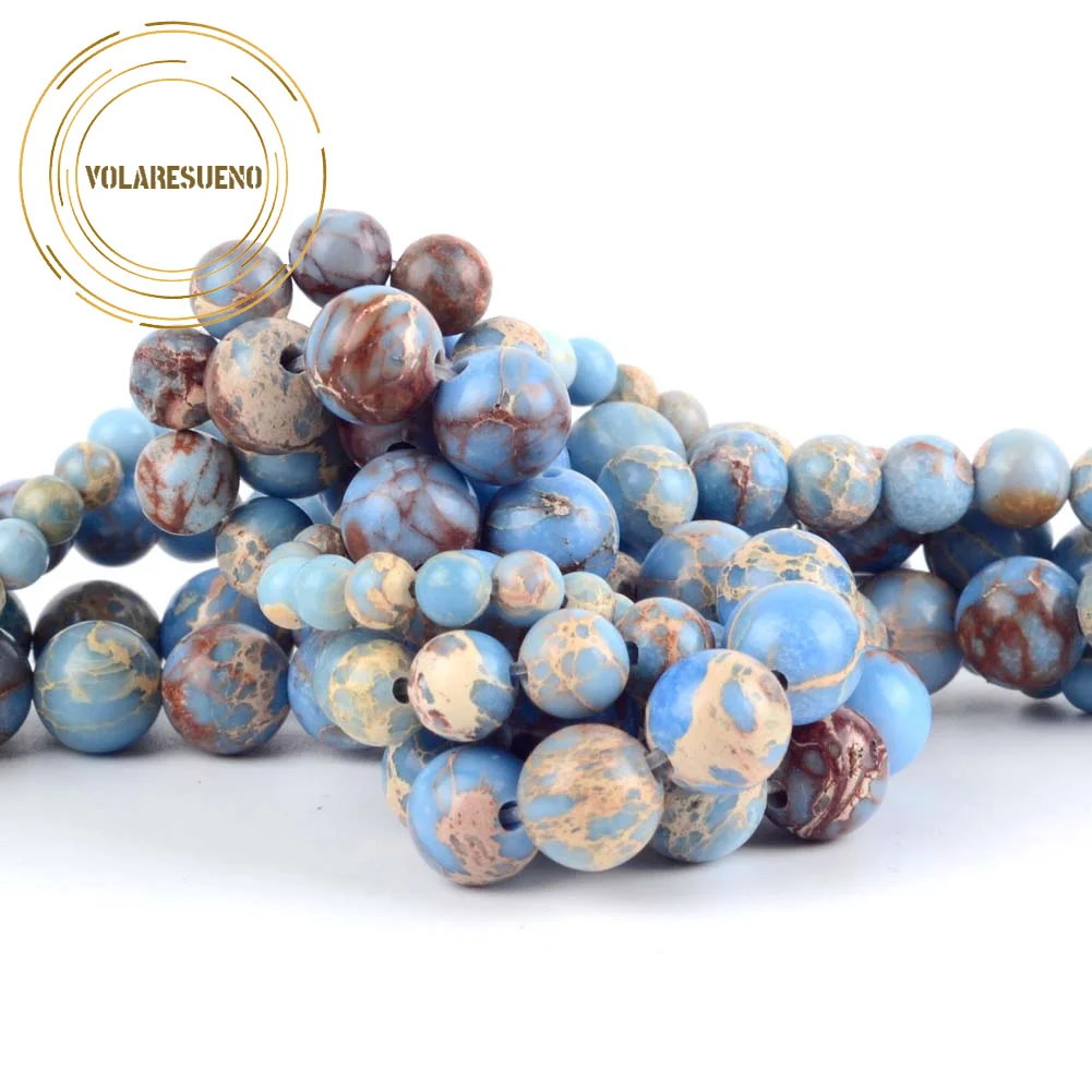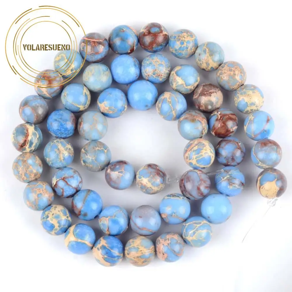 Natural Stone Light Blue Sea Sediment Imperial Jaspers Beads