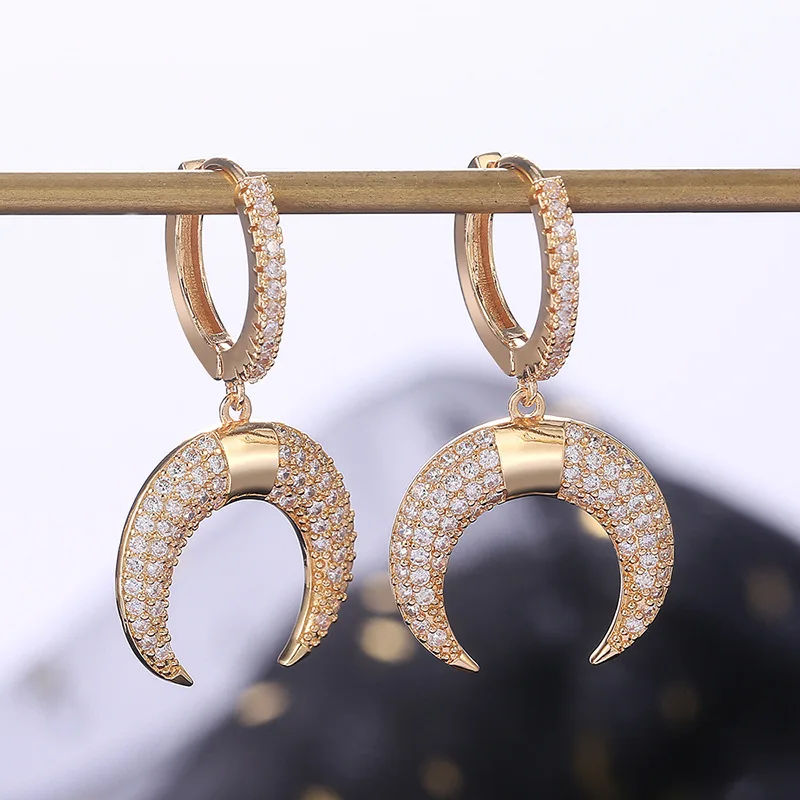 Женские серьги-гвоздики в виде полумесяца, в этническом стиле