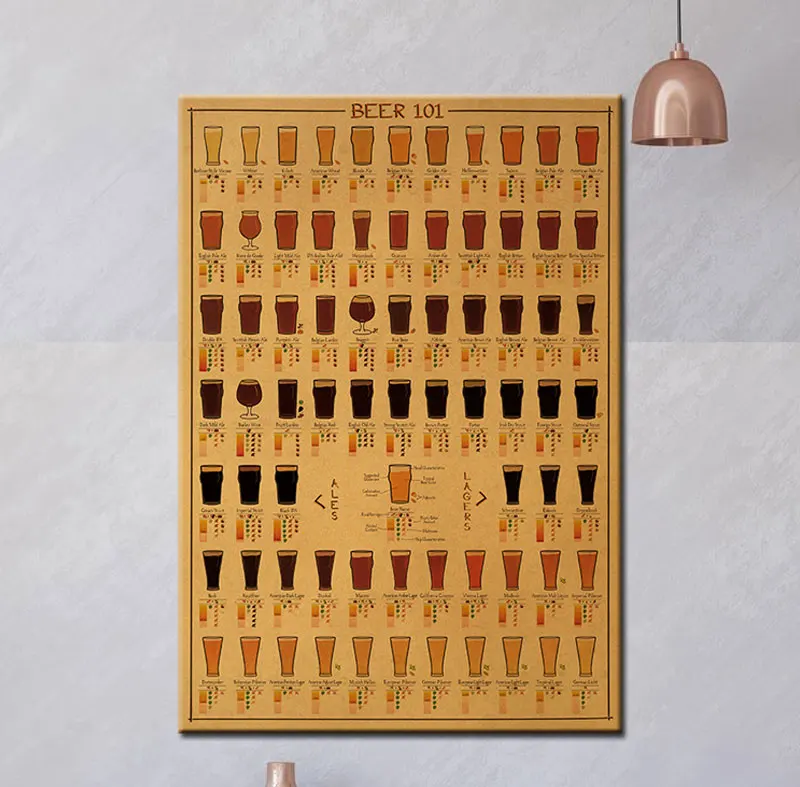 Карта классического пивного рецепта янтарного цвета, ретро Ностальгический постер из крафт-бумаги, украшение для бара и дома, настенные наклейки
