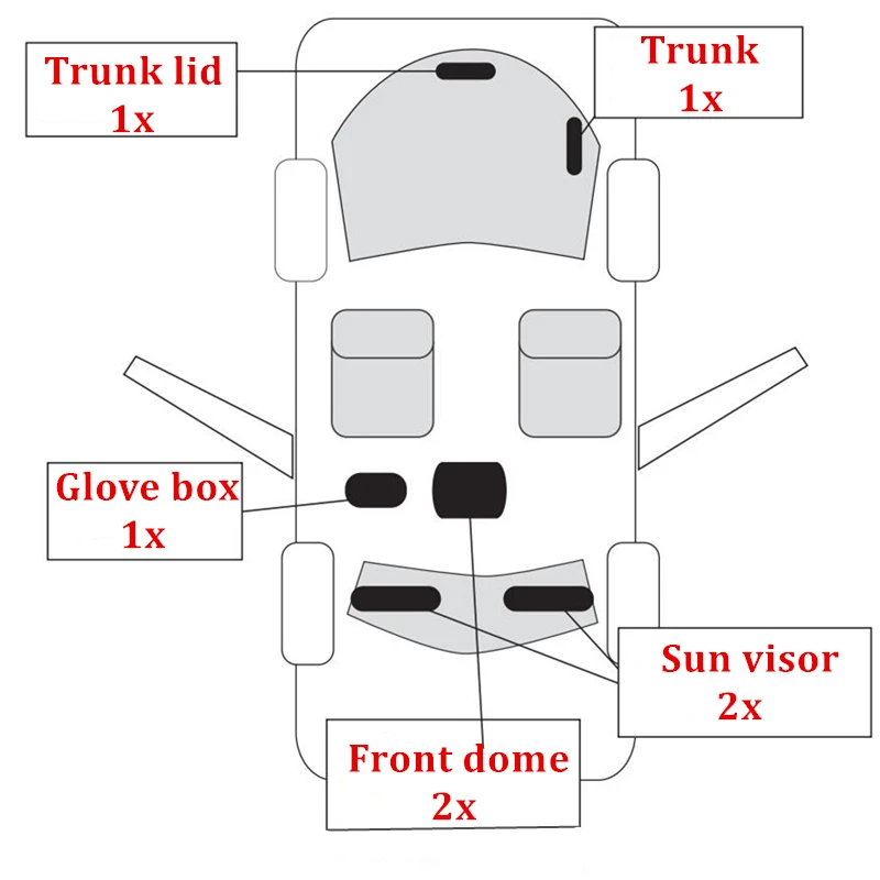 Комплект купольсветильник ников для Nissan Leaf ZE0 2011-2017, 6 шт...