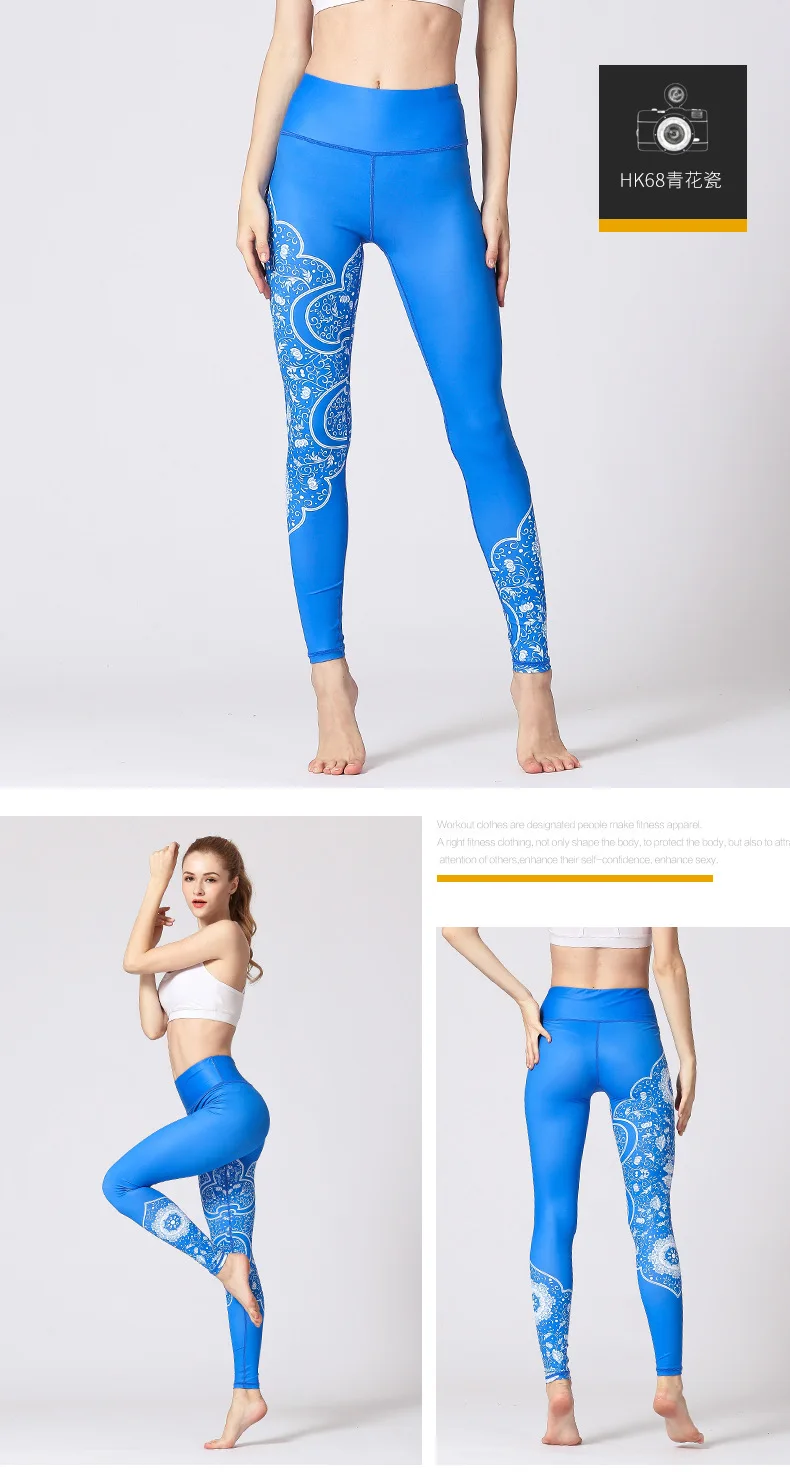 Леггинсы с принтом, штаны для йоги с высокой талией, бесшовные колг...