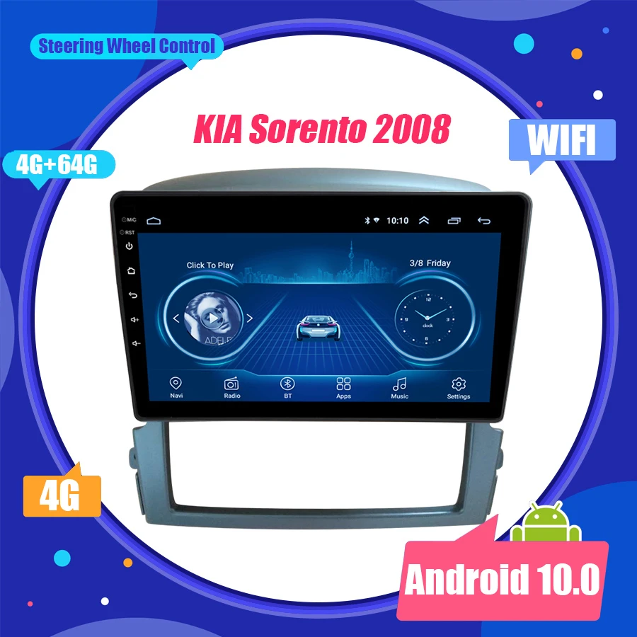 Автомагнитола для Kia Sorento 2008, Android 10, Восьмиядерный процессор, DVD, GPS-навигатор
