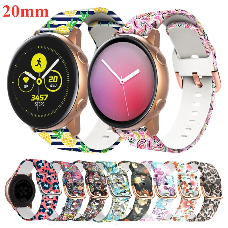 20 мм силиконовый дышащий ремешок с принтом для Samsung Galaxy Watch Active 42 мм Gear Sport S2 браслет для Garmin Huawei Amazfit Bip