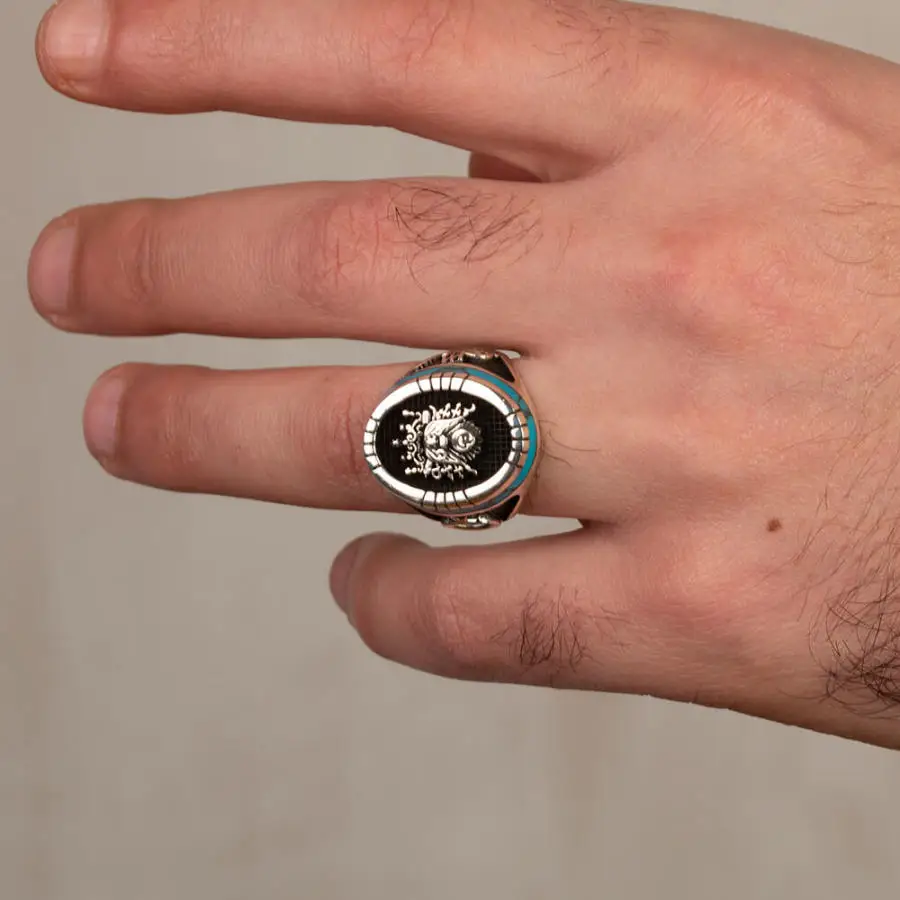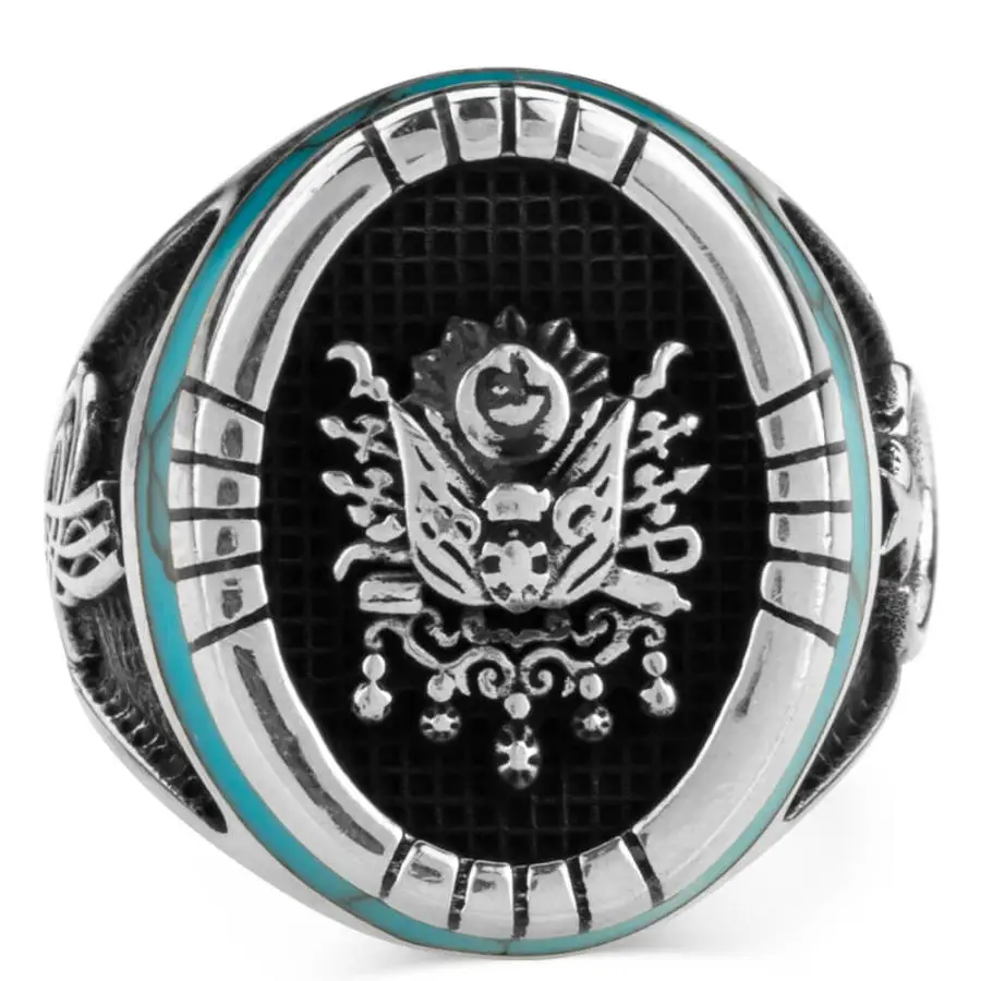 925 пробы Серебряное османское полумесяц звезда мужское кольцо с бирюзовой отделкой османское кольцо серебро кольцо для мужчин