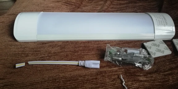 Очень легкая и ощущается хлипкой: разьемы чуть тугие (на некоторых есть облой) и прилагать усилие страшновато, но проблем не было. Отлично светит, мерцания не заметил. Монтаж или на скобы (за центральную металлическую часть) , или на двусторонний скотч (за боковые пластиковые накладки). Не замерял, но по ощущениям лампа греется при работе градусов до 40-45. На корпусах - наклейка с отметкой о месяце выпуска, что вообще удивительно. Для освещения рабочего места - идеальный вариант за свои деньги. Если важен внешний вид, возможно захочется что-то подороже.