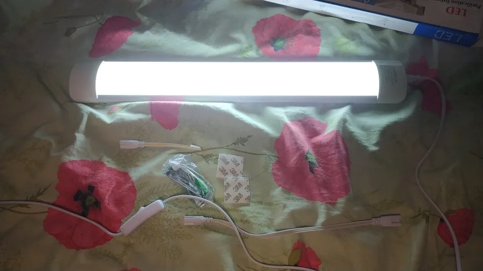 Отличные лампы! Пришли целые, отлично упакованы. Подсоединить друг к другу и подключить шнур питания элементарно, справится даже ребенок. Я установила лампы на кухонные шкафы с помощью двухстороннего скотча (идет в комплекте), потому что лампы суперлегкие, и этого достаточно, чтобы надежно их зафиксировать, хотя в комплекте есть и нормальный крепеж. Лампы очень яркие, как мы и хотели. Очень довольны, рекомендуем!