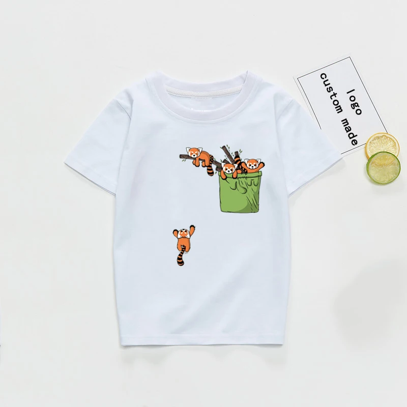 Карманные красные панды, футболки с животным принтом для мальчиков и девочек, детские белые футболки, милые детские топы для малышей, одежда, рубашка, рубашка, Прямая поставка