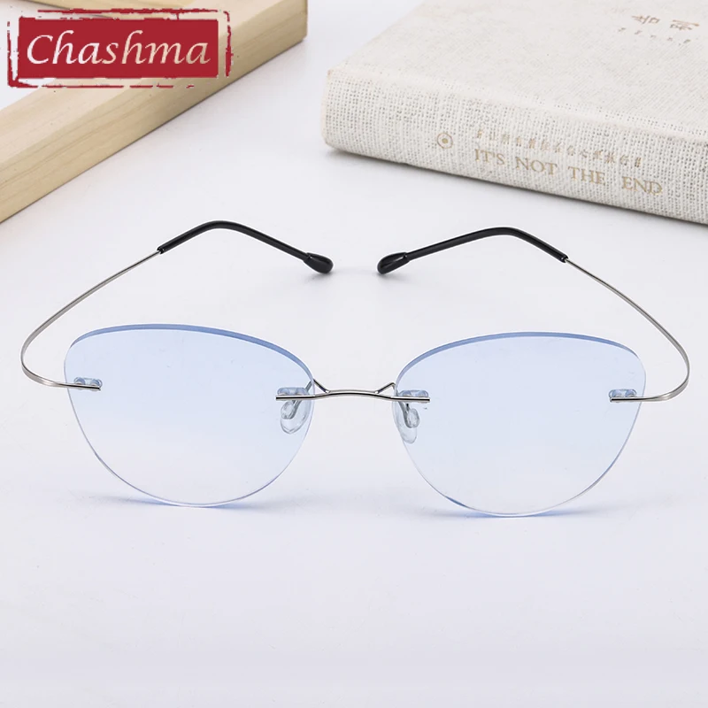 Женские очки по рецепту Chashma кошачий глаз, оправа с градиентными линзами, титановая оправа для очков без оправы