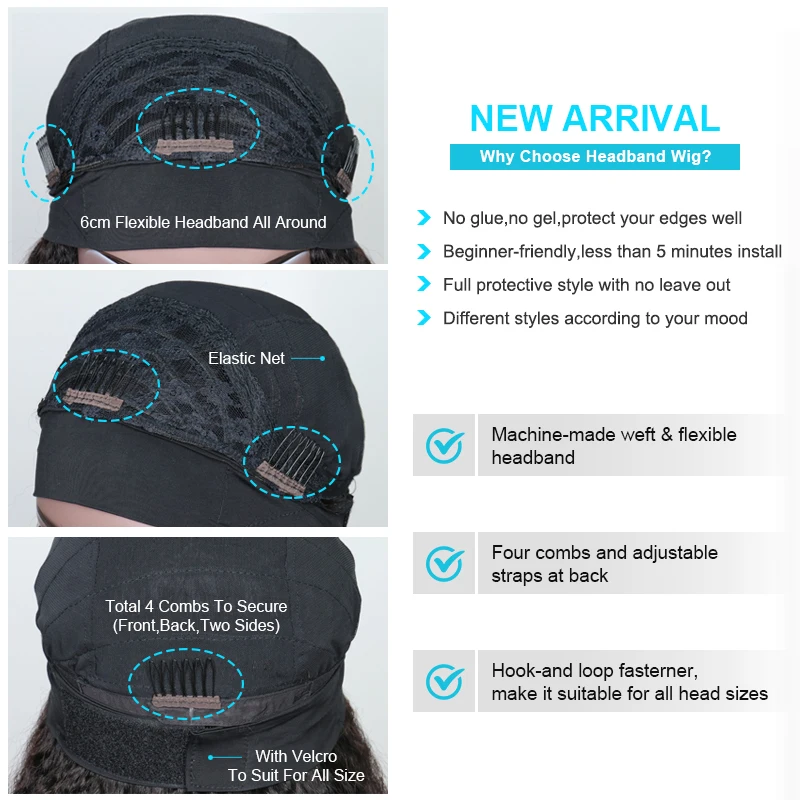 Тип парика: полностью машинный парикОсобенности: повязка на голову, парики из натуральных волос, изготовленные из высококачественного ледяного шелка. Дышащие и удобные.Простота установки и стиля.Войдите в комплект с повязками на голову, модными и популярными.Цвет волос: натуральный цветСтиль волос: кудрявый прямой парикДлина волос: 10-24 дюймаПлотность волос: 150%, 180% и 250%Размер шапки: средний размер по умолчаниюСоотношение волос: высокое соотношение волос парик, полный и надувной.