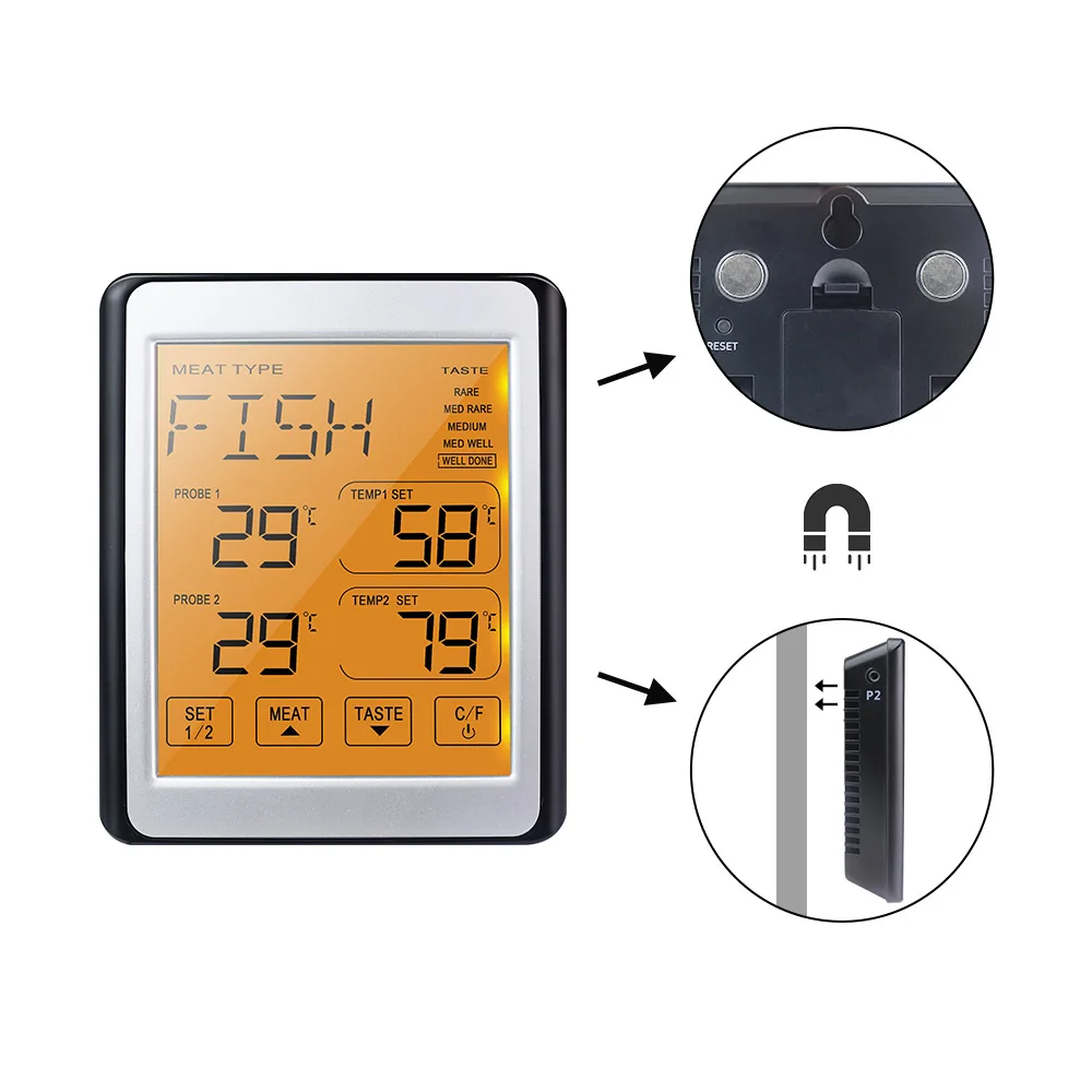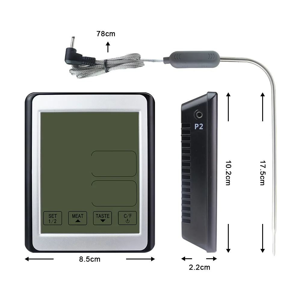 Функция: термометр с двойным датчиком, есть 8 видов мяса и 5 видов вкуса на выбор, доступна индивидуальная сигнализация.