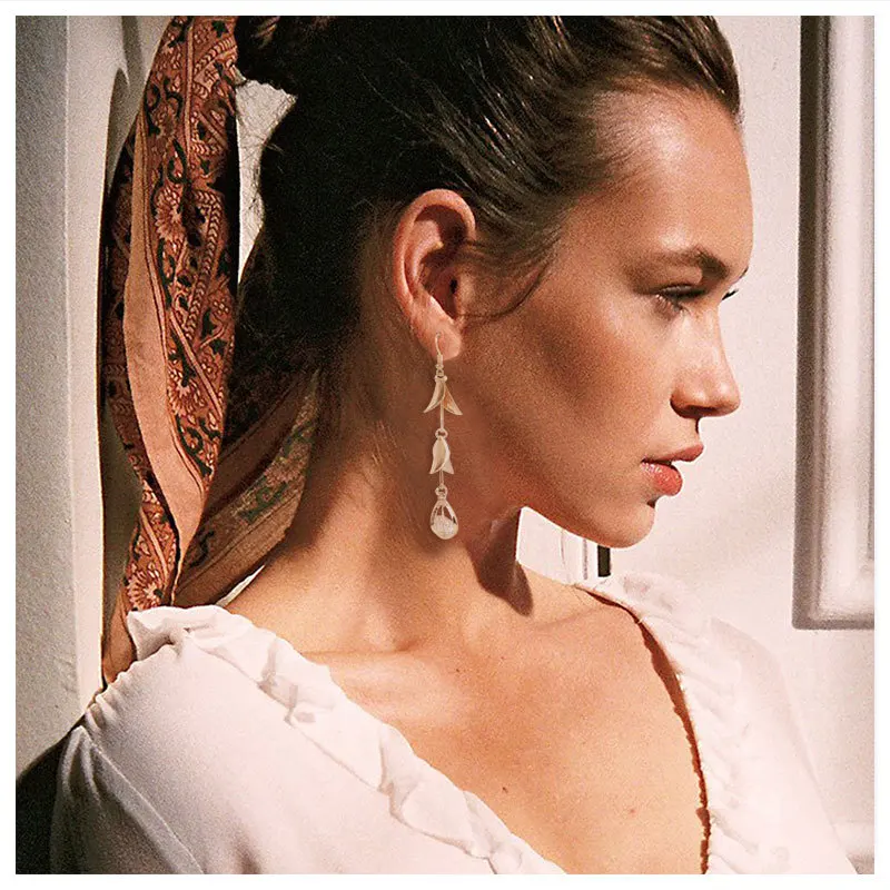 Женские длинные серьги-подвески из стерлингового серебра S925 пробы...