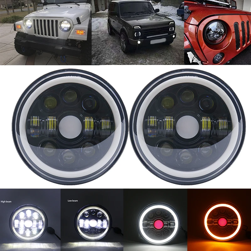 12 шт. 7-дюймовые светодиодный ные фары с кольцевым указателем поворота Halo для lada niva 4x4 suzuki samurai 7 дюймов DRL Halo Фары для ваз 2101