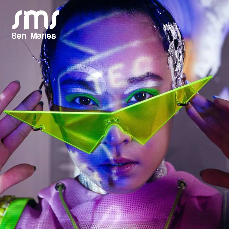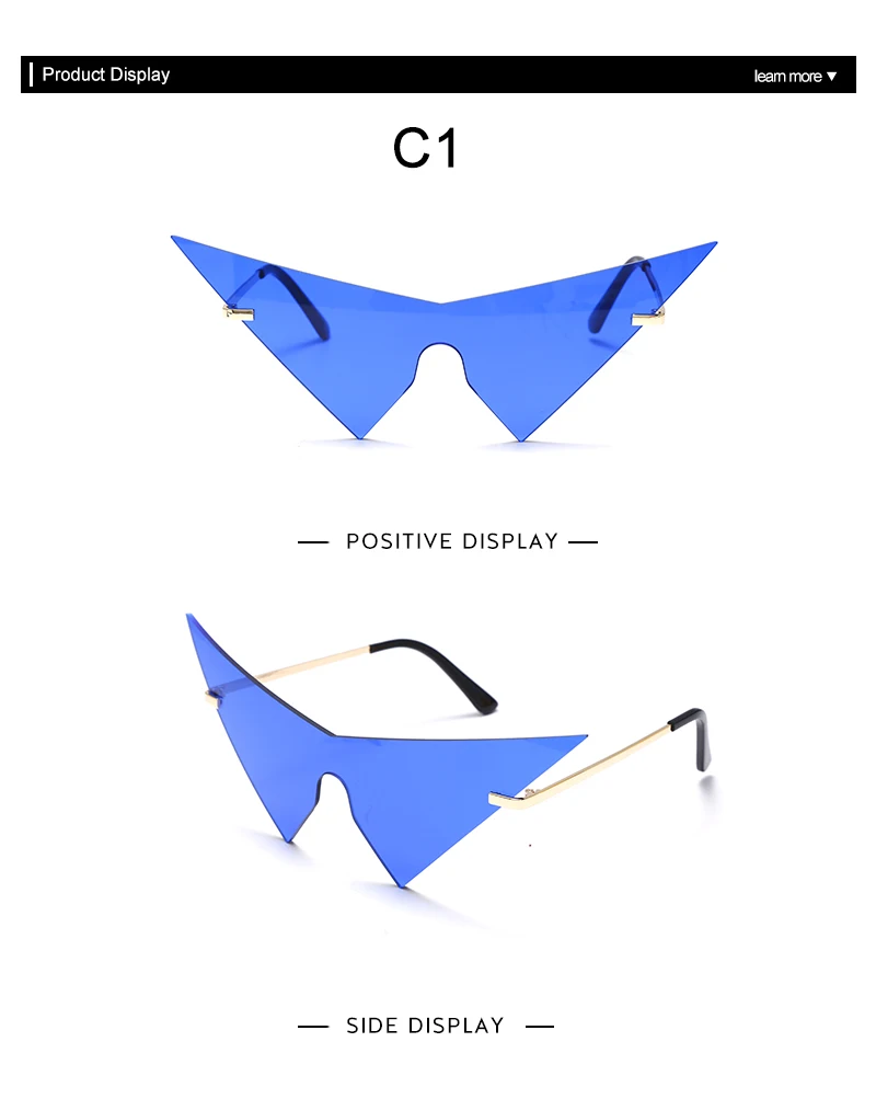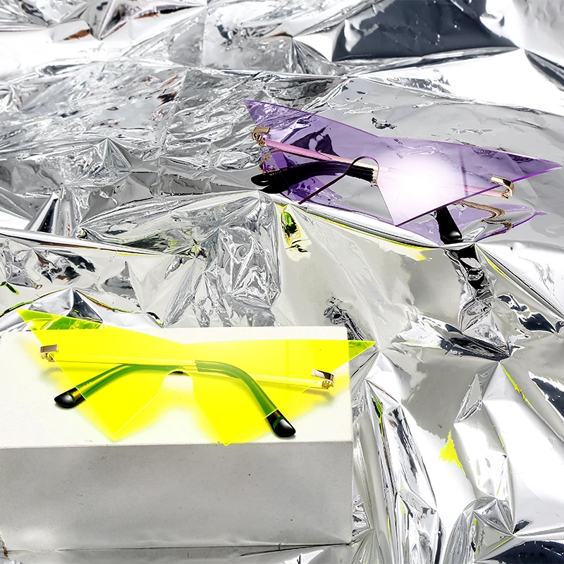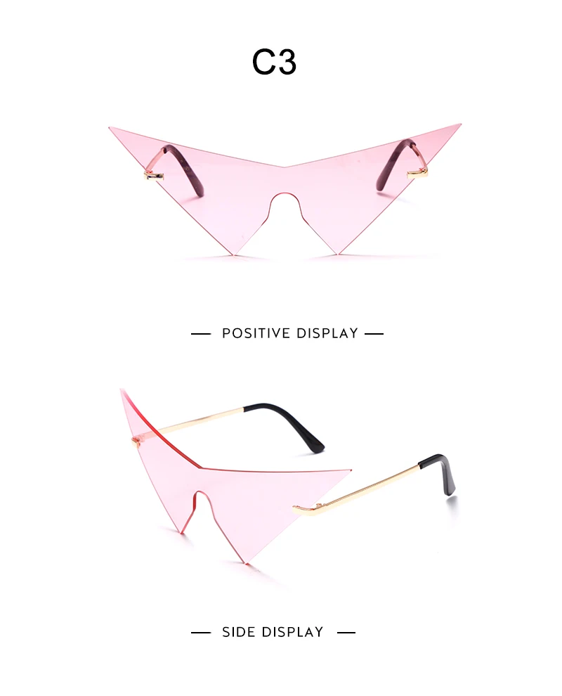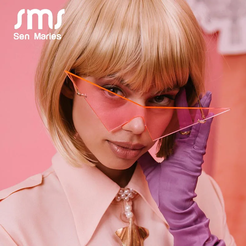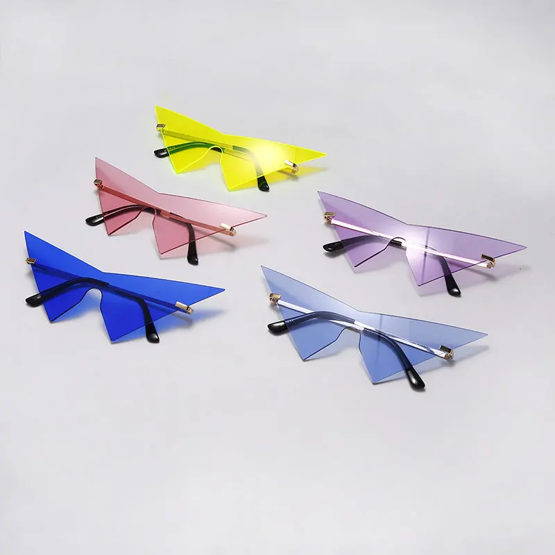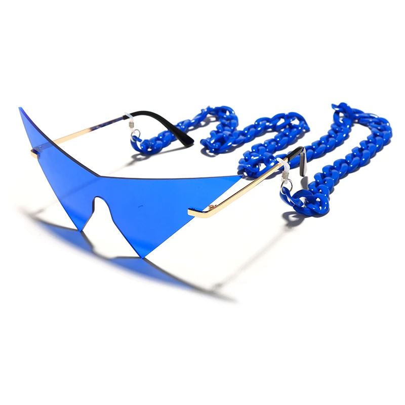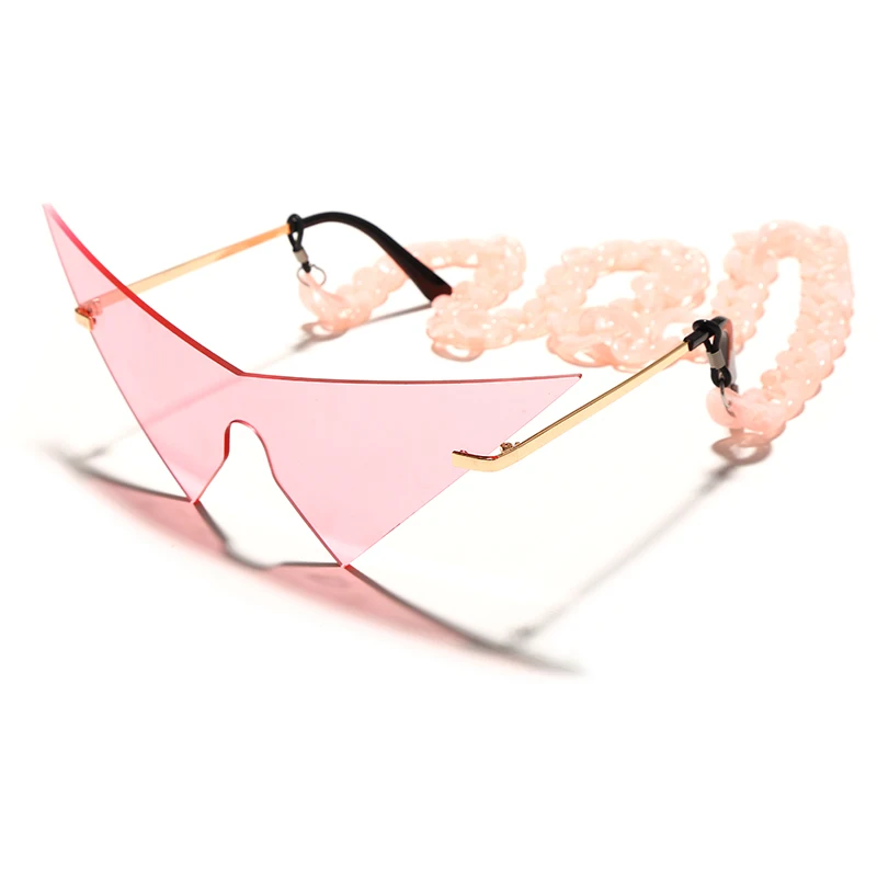 Солнцезащитные очки женские, большие, в крупной оправе, без оправы, в стиле панк, 2021, голубые, розовые, кошачий глаз