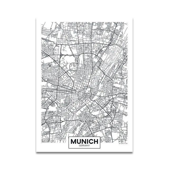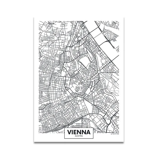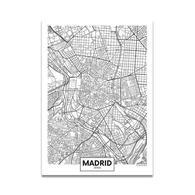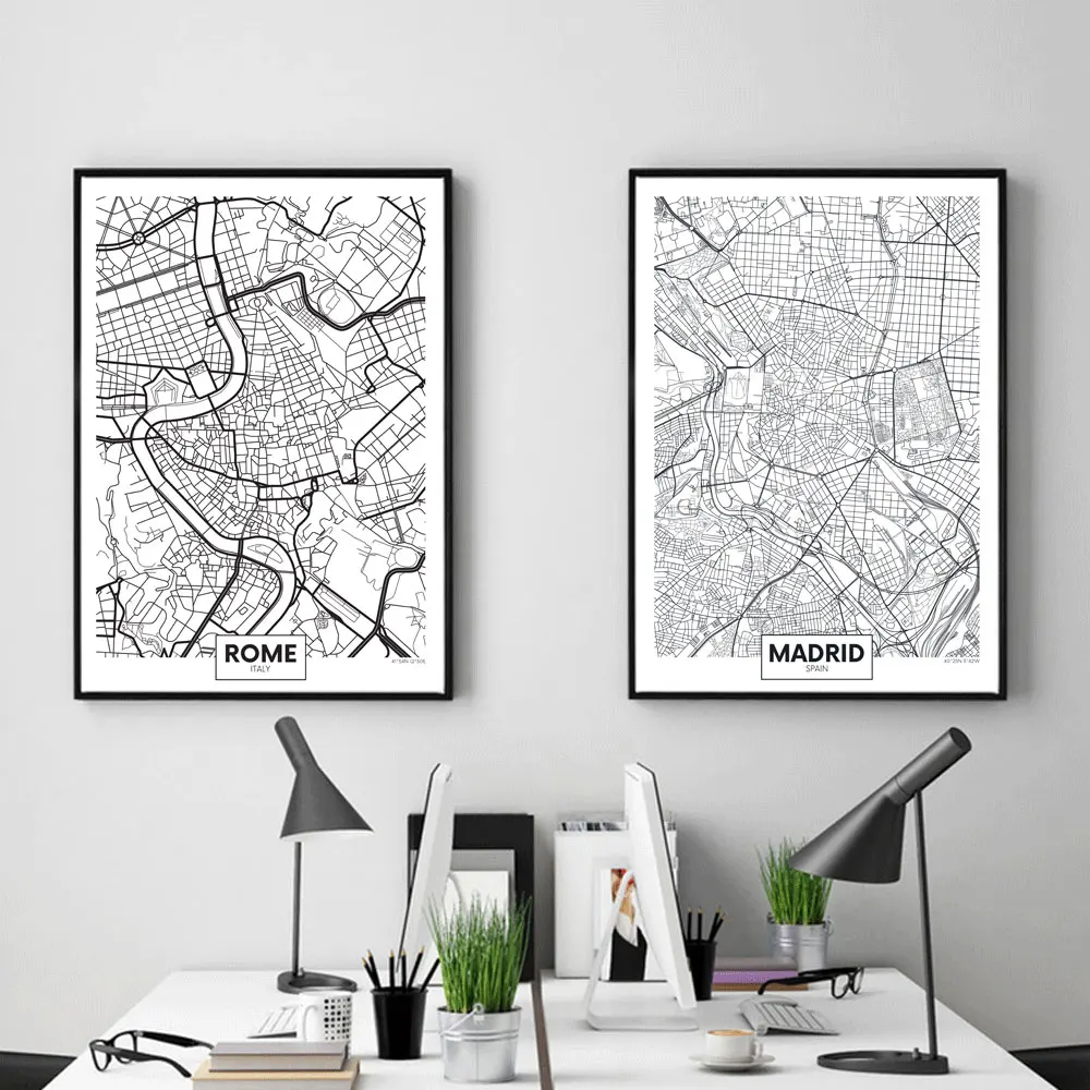 Милан, Рим, Вена, Мадрид, Карта города, плакат, печать, черно-белая...