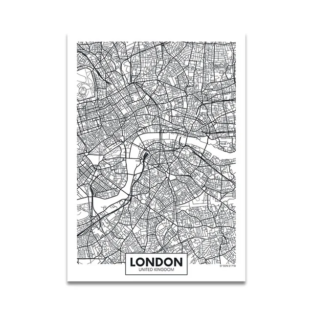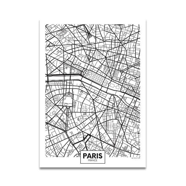 Черная линия карта города плакат Париж Лондон Нью-Йорк Скандинавска...