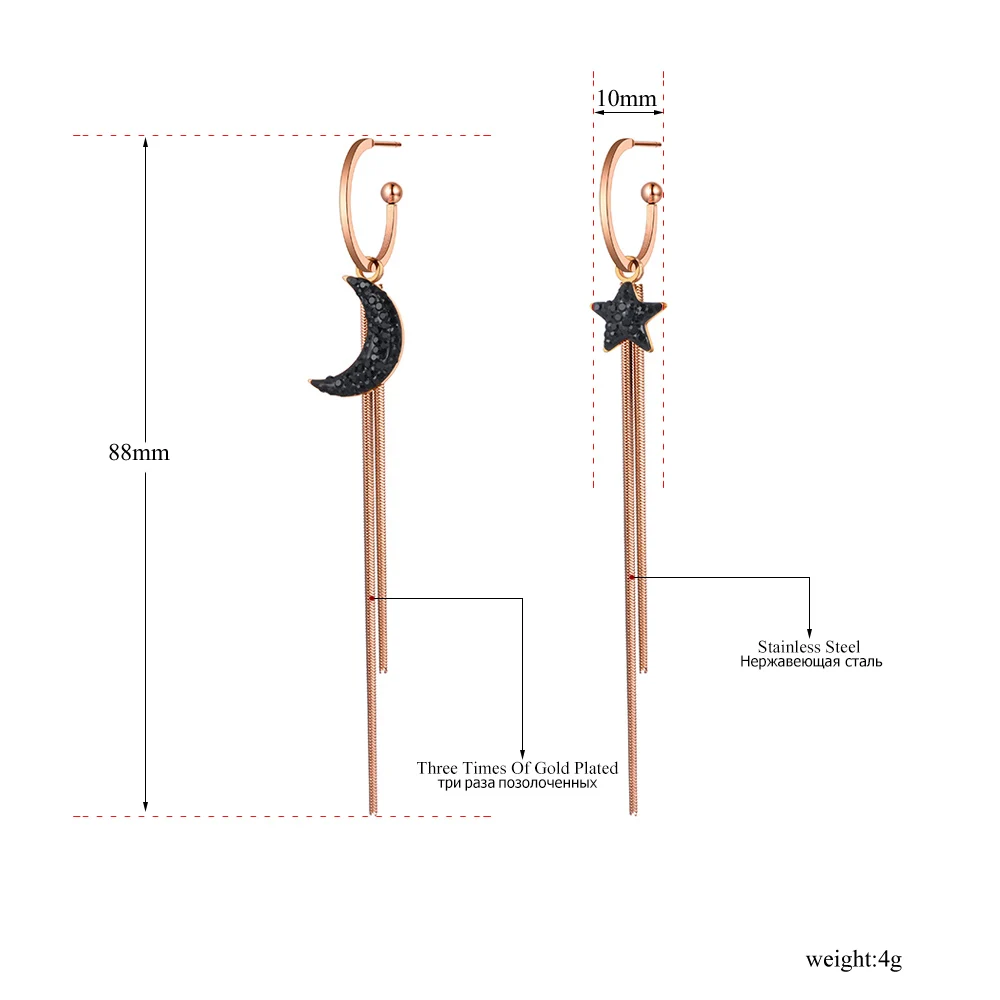 Женские серьги-кисточки Lokaer, из титана и нержавеющей стали, с Луной и звездой, в богемном стиле, вечерние, E20197