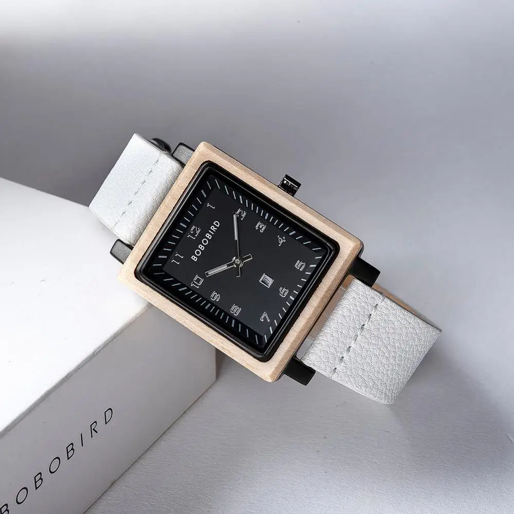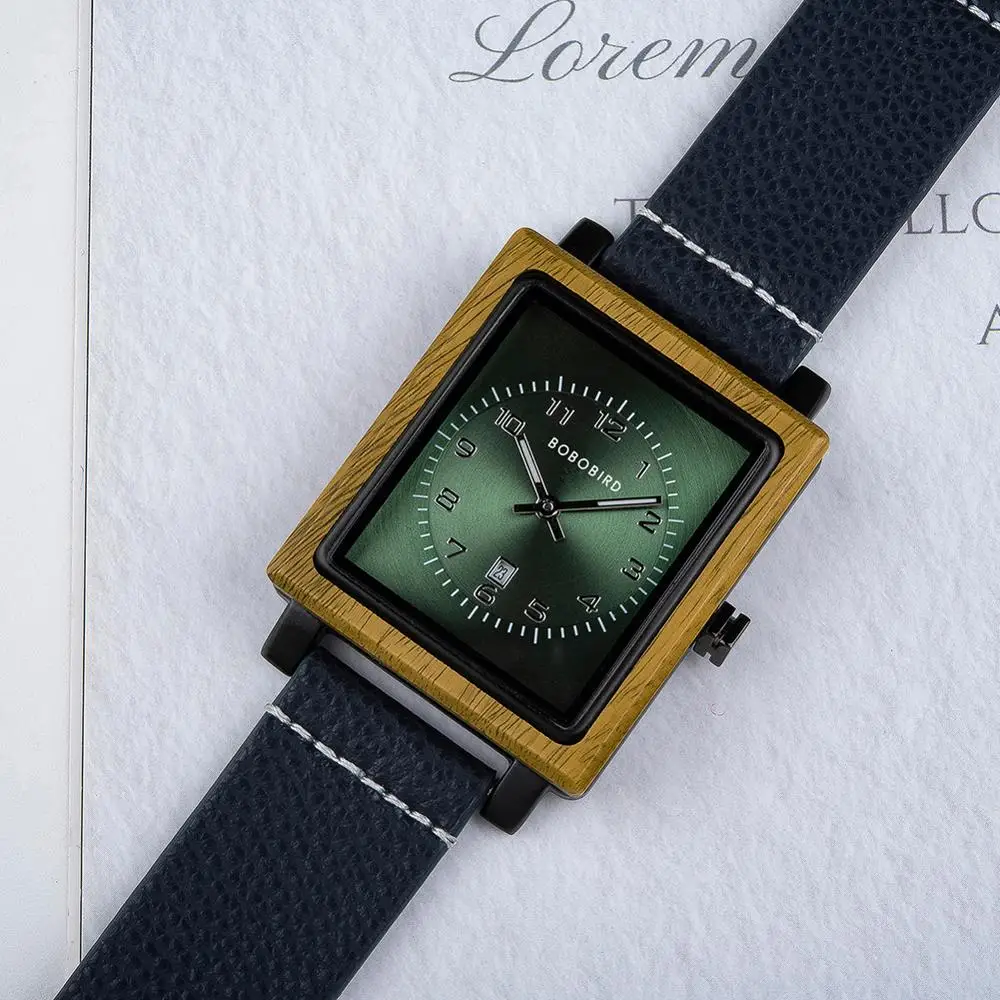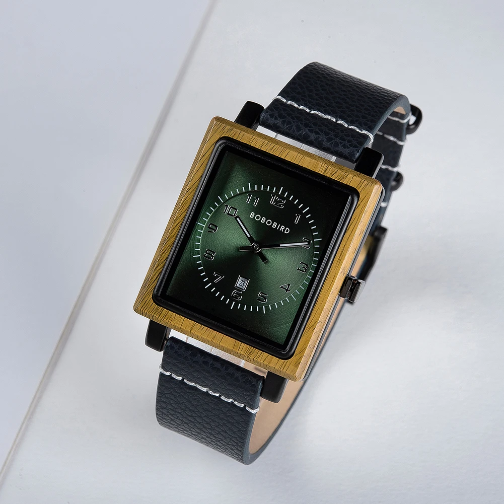 BOBO BIRD роскошные мужские спортивные деревянные часы с автоматическим отображением даты кварцевые часы с кожаным ремешком мужские часы Прямая поставка