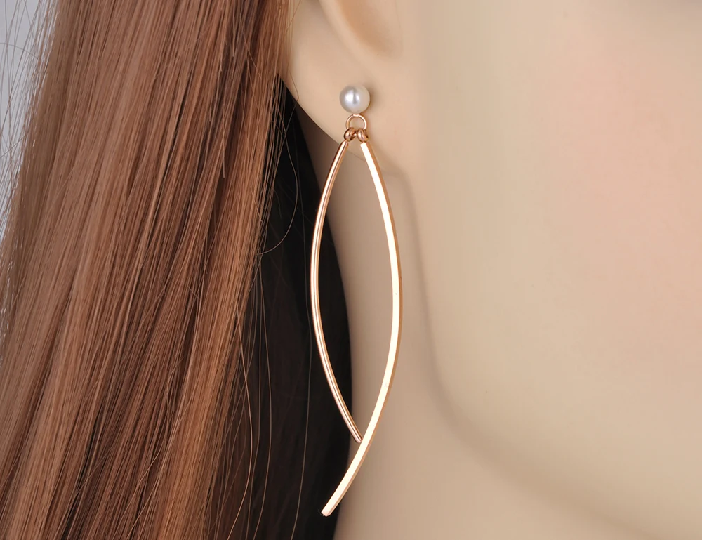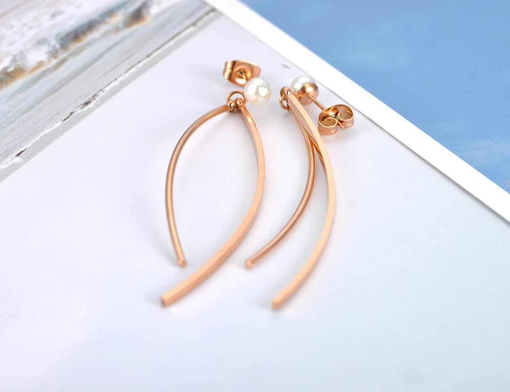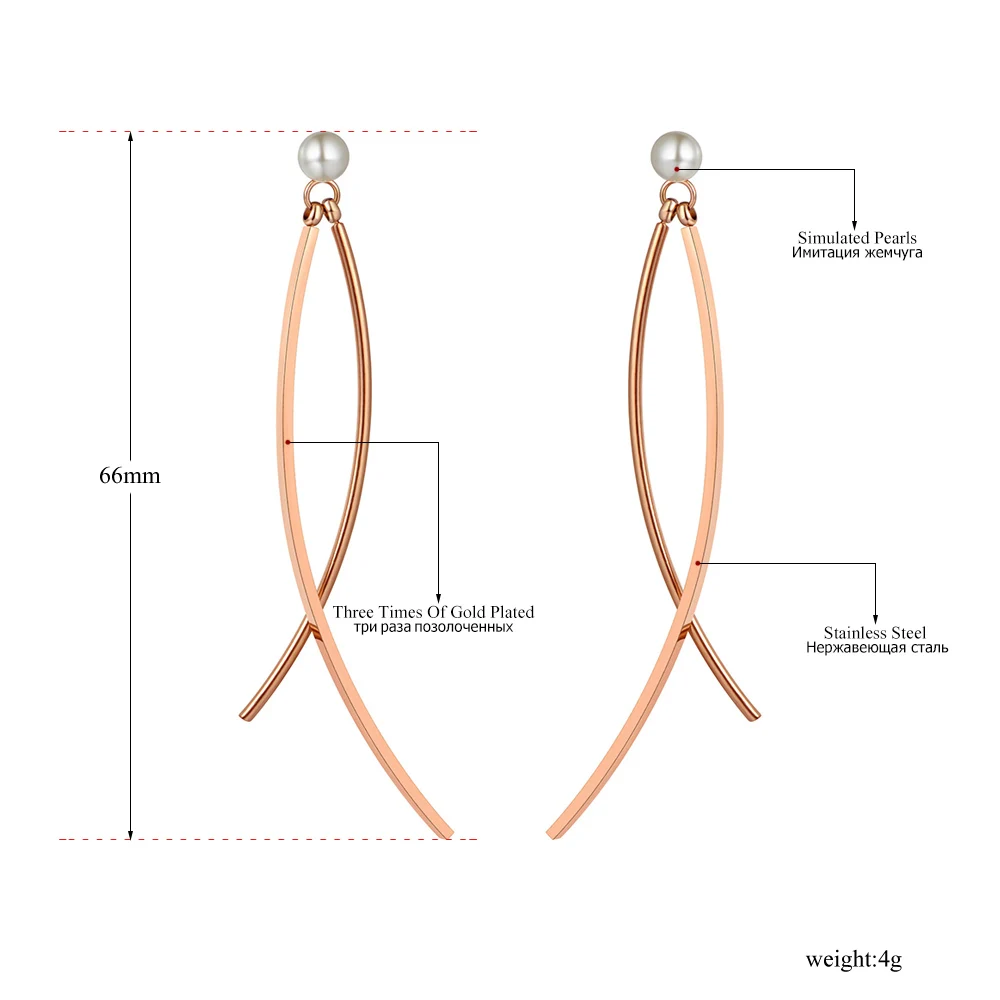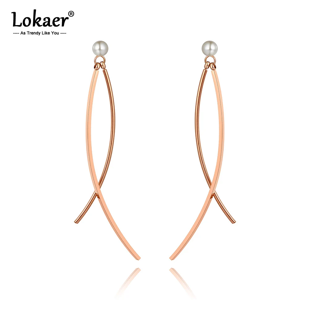 Женские Геометрические серьги Lokaer, модные вечерние серьги из титана и нержавеющей стали с белым жемчугом, розовое золото, E20190