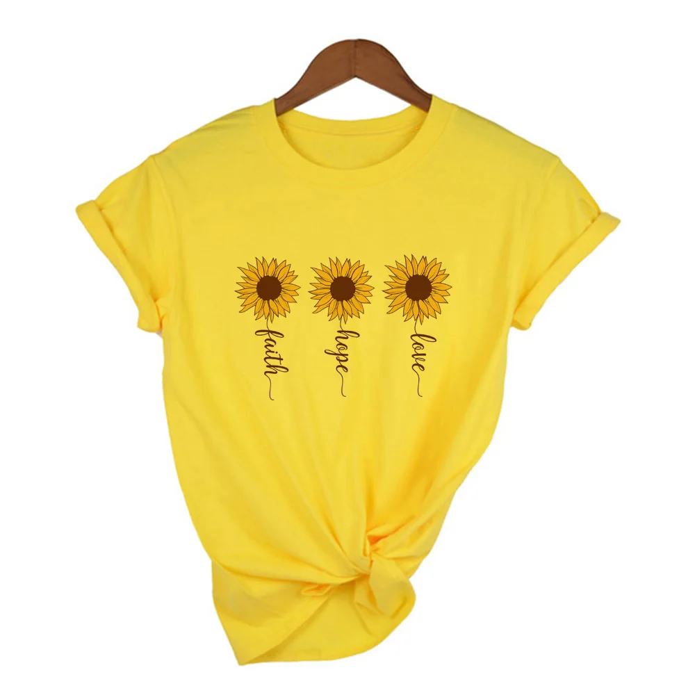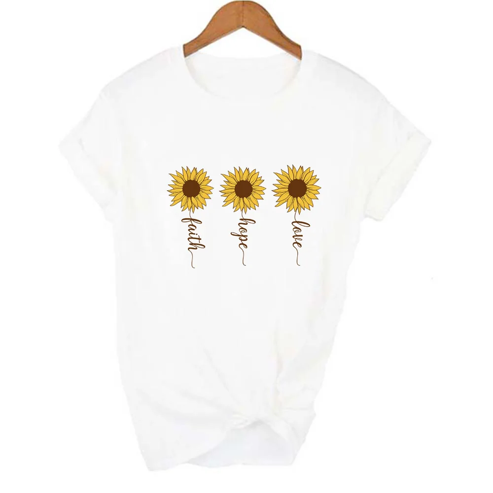 Женская футболка с надписью «Sunflower Faith Hope Love», повседневные винтажные футболки в стиле Харадзюку с изображением Иисуса, Camisetas Mujer