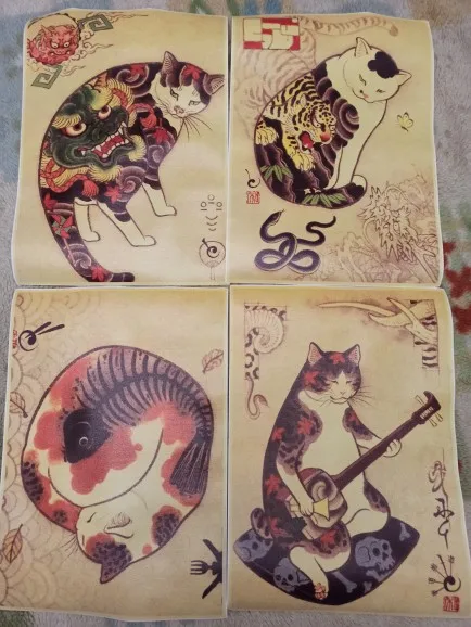 Ретро-постеры в виде японской кошки самурая, искусство, Декор, Настенный декор, милая животная, качественная Картина на холсте для домашнего декора