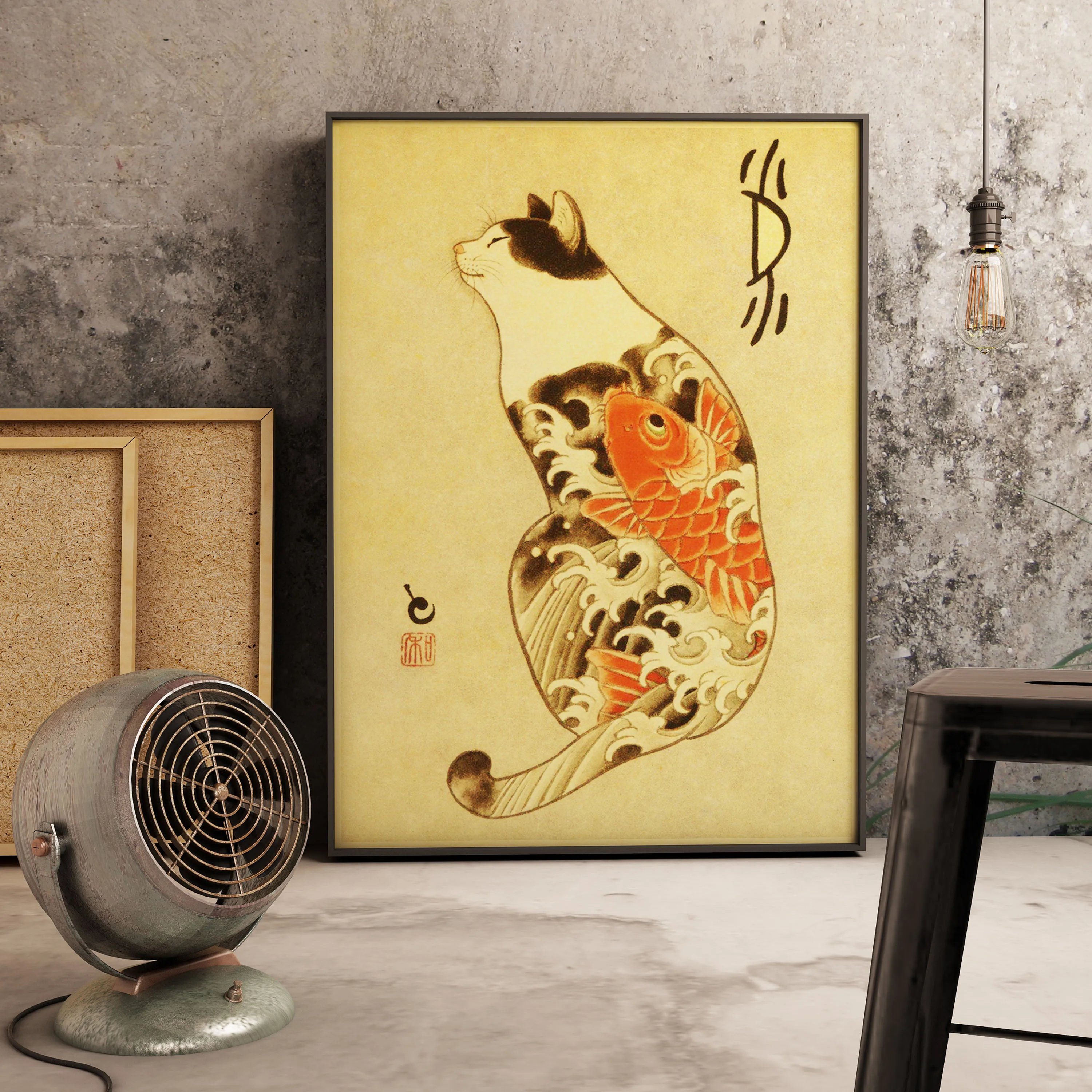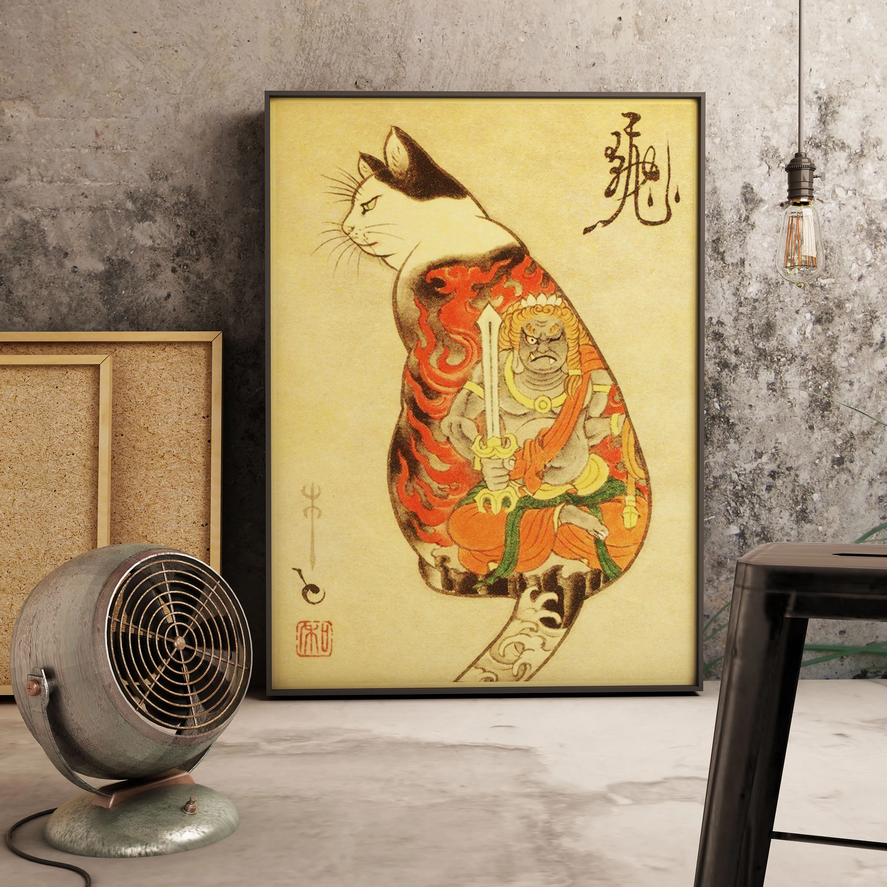 Японская кошка-Самурай, рамен, ностальгия, домашний декор, художест...