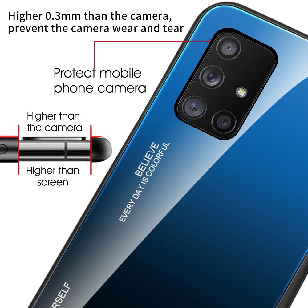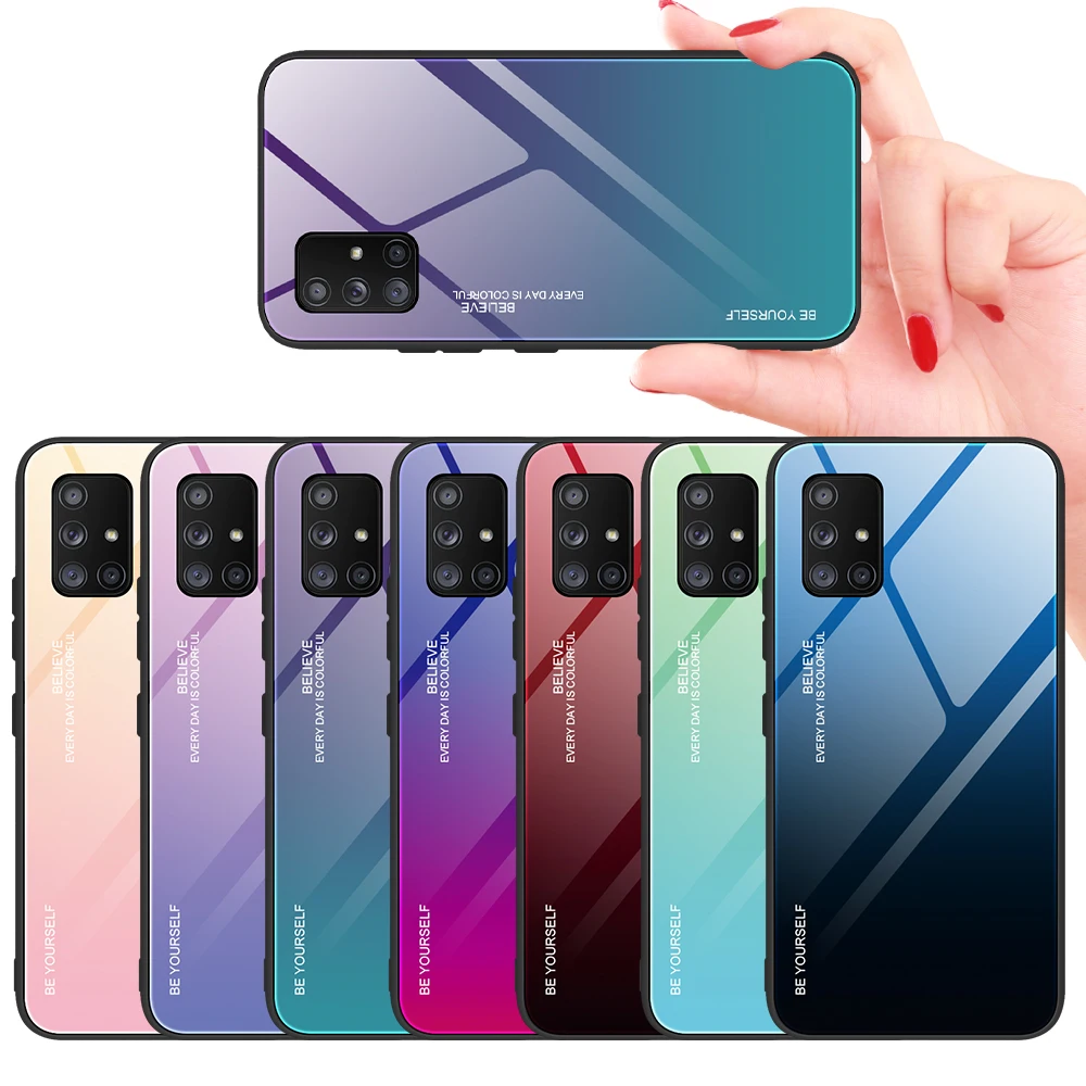 Градиент из окрашенного закаленного стекла чехол для телефона Samsung Galaxy A51 4G A50 A52 A71 A31 A72 5G A21S M31 A40 A20E A32 A10 чехол