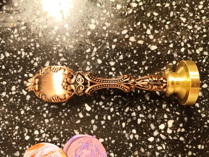 Хорошая ручка для восковой печати, выглядит действительно красиво и элегантно. Интересные украшения и хороший бронзовый цвет медали прост в использовании. Потрясающе для старых фотографий. Хороший на ощупь и тяжелый. Ответственный продавец, парсер был упакован хорошо и пришел очень быстро, две недели в Польшу. Я могу порекомендовать!