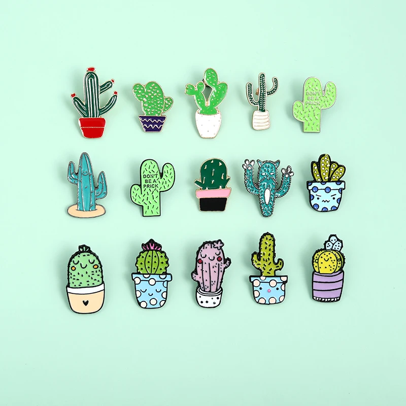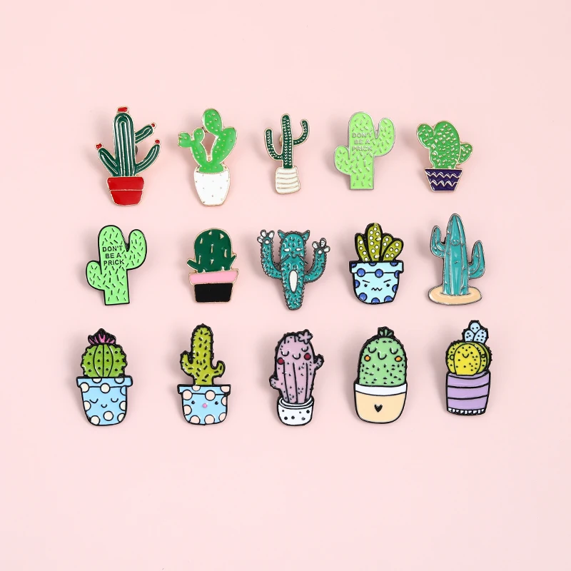 Эмалированные заколки в виде кактуса в горшке, симпатичная мультяшн...
