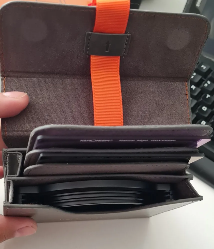 Не рекомендую к покупке для использования с круглыми фильтрами, чехол подходит только для использования с квадратными фильтрами, круглый можно уместить только один. В общем качество исполнения не на высоком уровне, швы хлипкие, слегка кривые кожа не очень приятная, места внутри крайне мало. Выглядит и ощущается довольно дешево. За эти деньги хотелось бы либо более высокого качества исполнения или альтернатив.