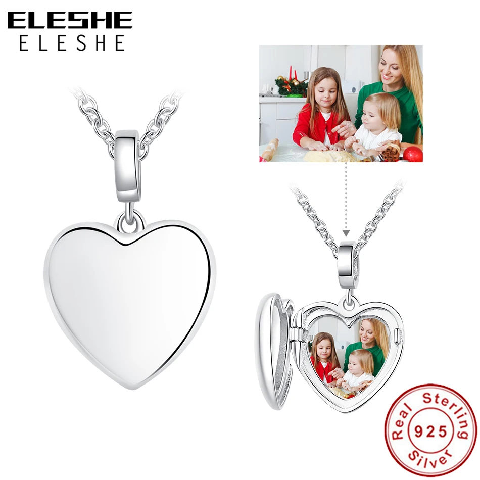 ELESHE пользовательские фото кулон ожерелье Аутентичные 925 стерлингового серебра с подвеской в форме сердца для женщин, модные свадебные украшения