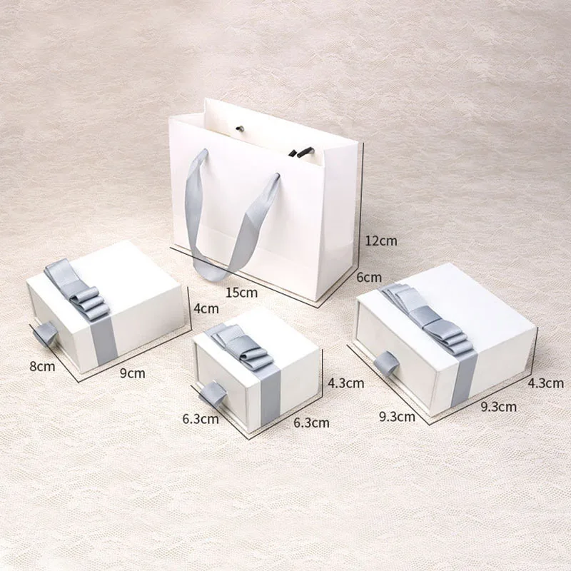10 шт., ювелирные изделия, серьги, ожерелье, часы, браслет, белая коробка, Сумка с бантом из ленты, подарок, чехол, упаковка для ювелирных изделий, дисплей для свадьбы