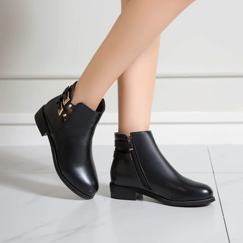 Ботинки Челси; Женские кожаные ботинки; Женские ботильоны на толстом каблуке с круглым носком; Зимняя размера плюс 48; Ботинки на платформе; 7104