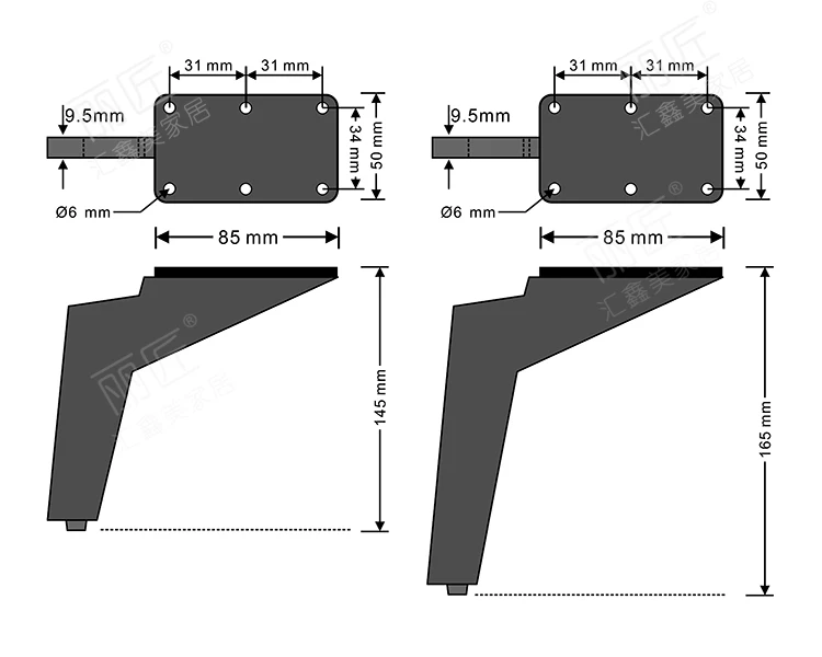 2 шт.компл., металлическая мебель, ножки 145165 мм, черные серповид...
