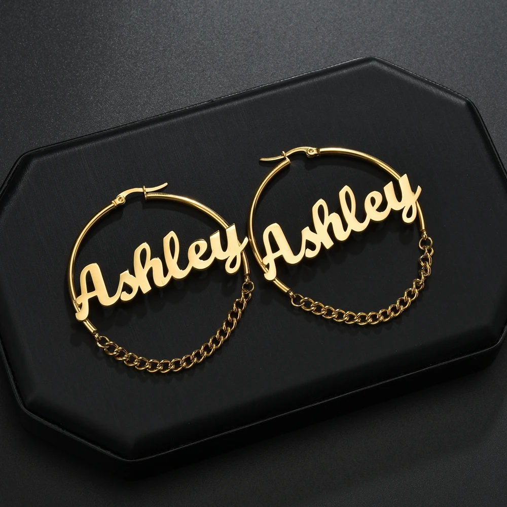Серьги-кольца в стиле панк с именем на заказ, ювелирные украшения и...